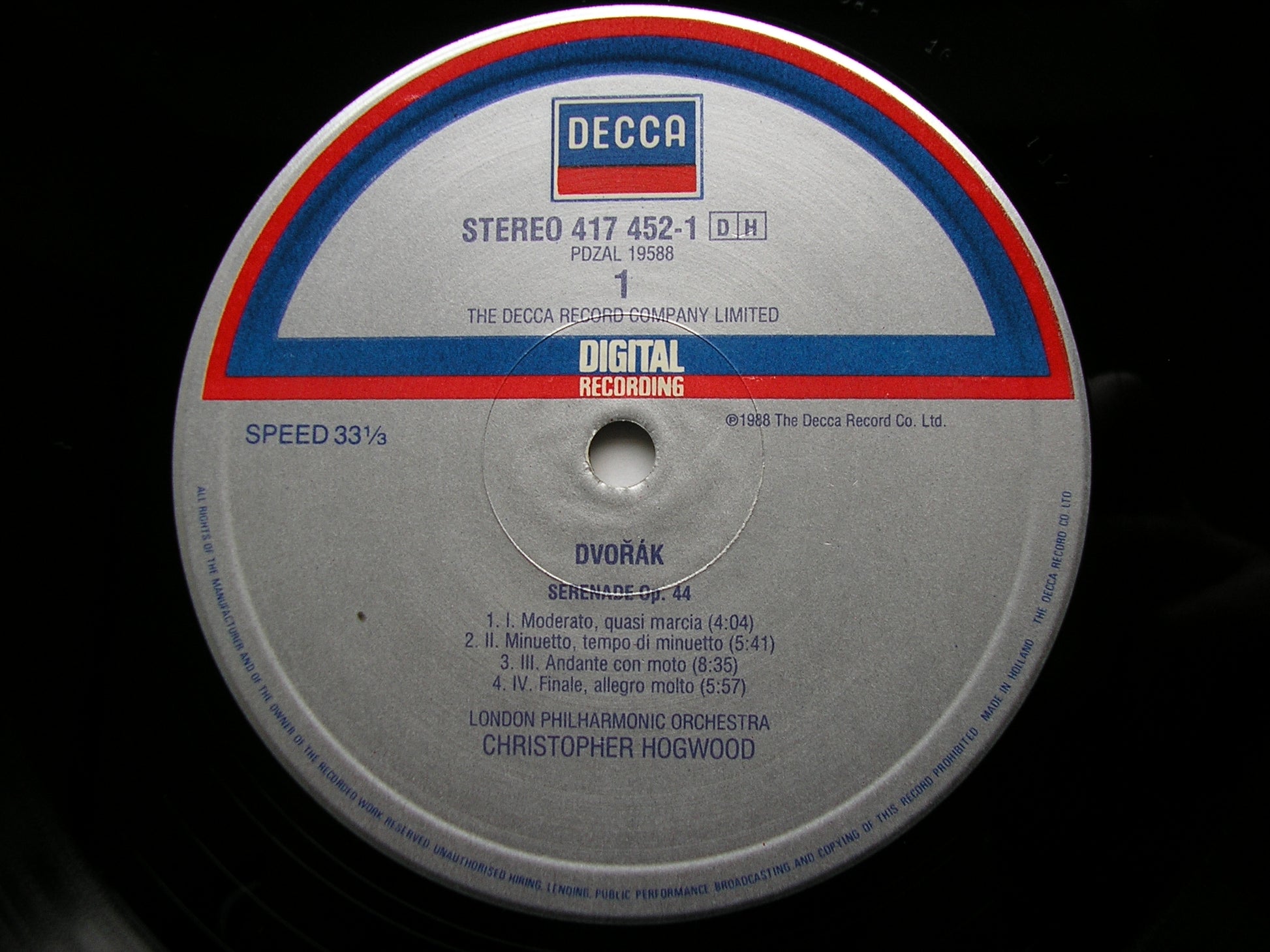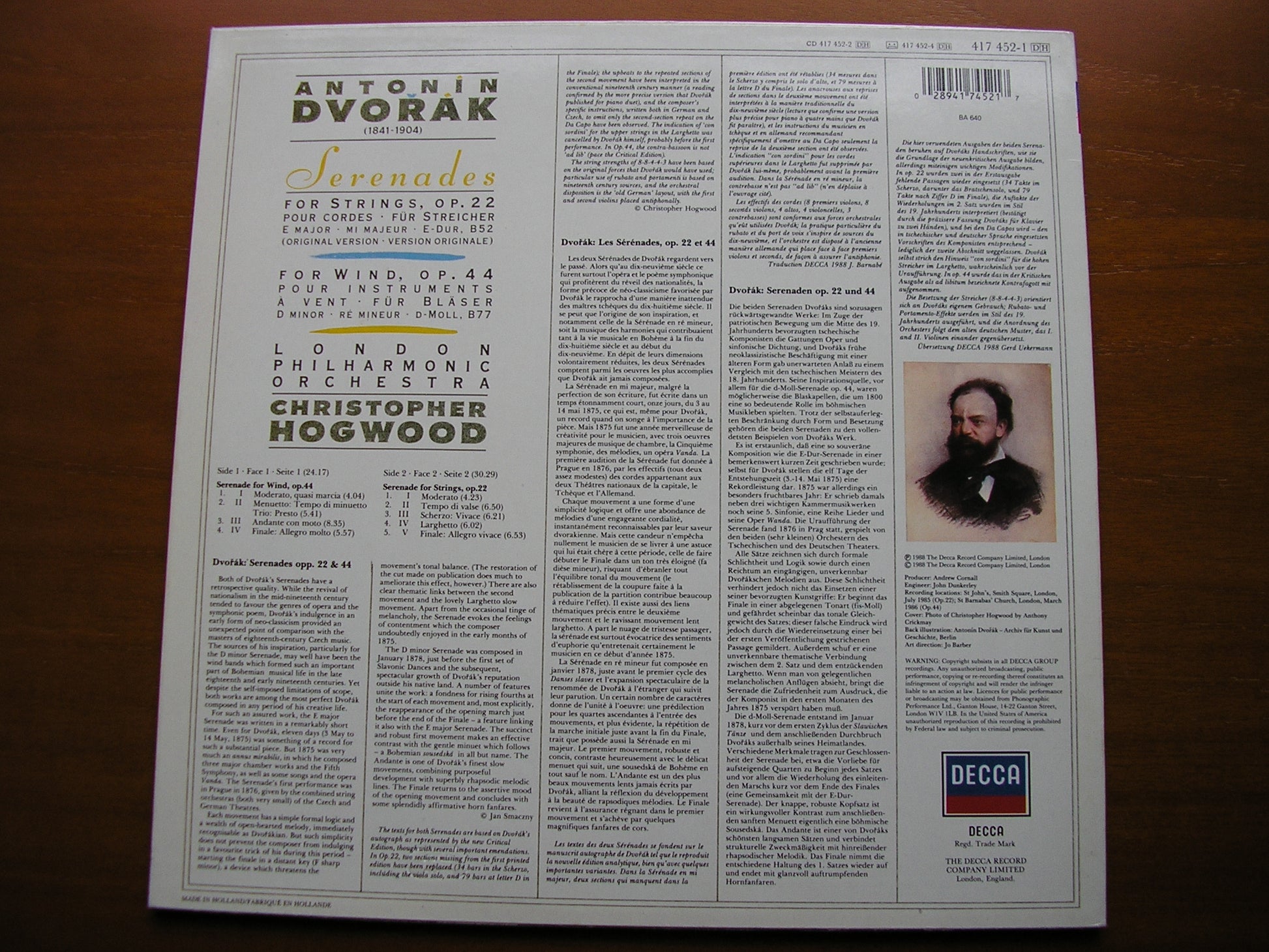 417 452  DVORAK: SERENADE FOR STRINGS Op. 22 / SERENADE FOR WIND Op. 44  CHRISTOPHER HOGWOOD / LONDON PHILHARMONIC ORCHESTRA