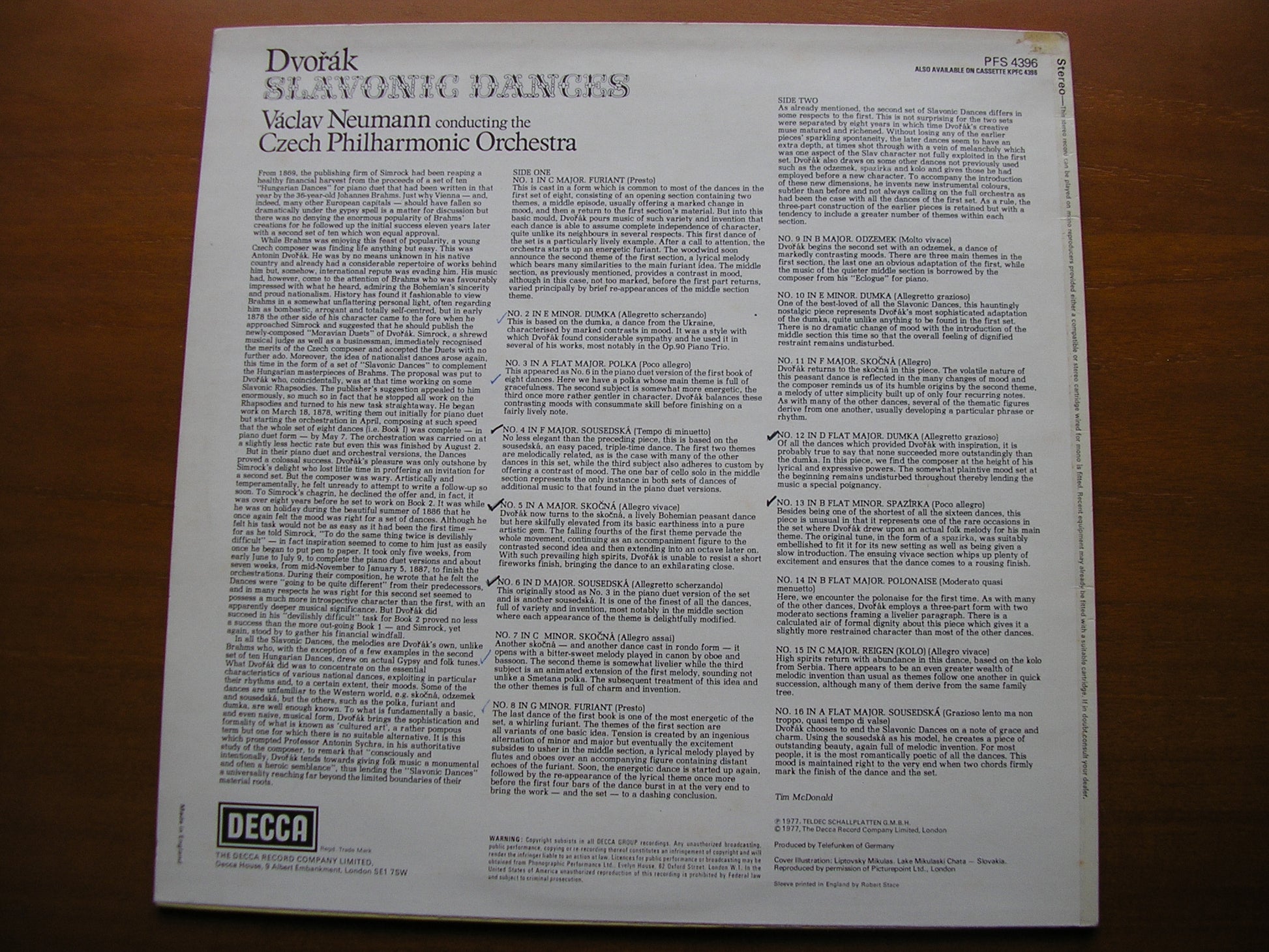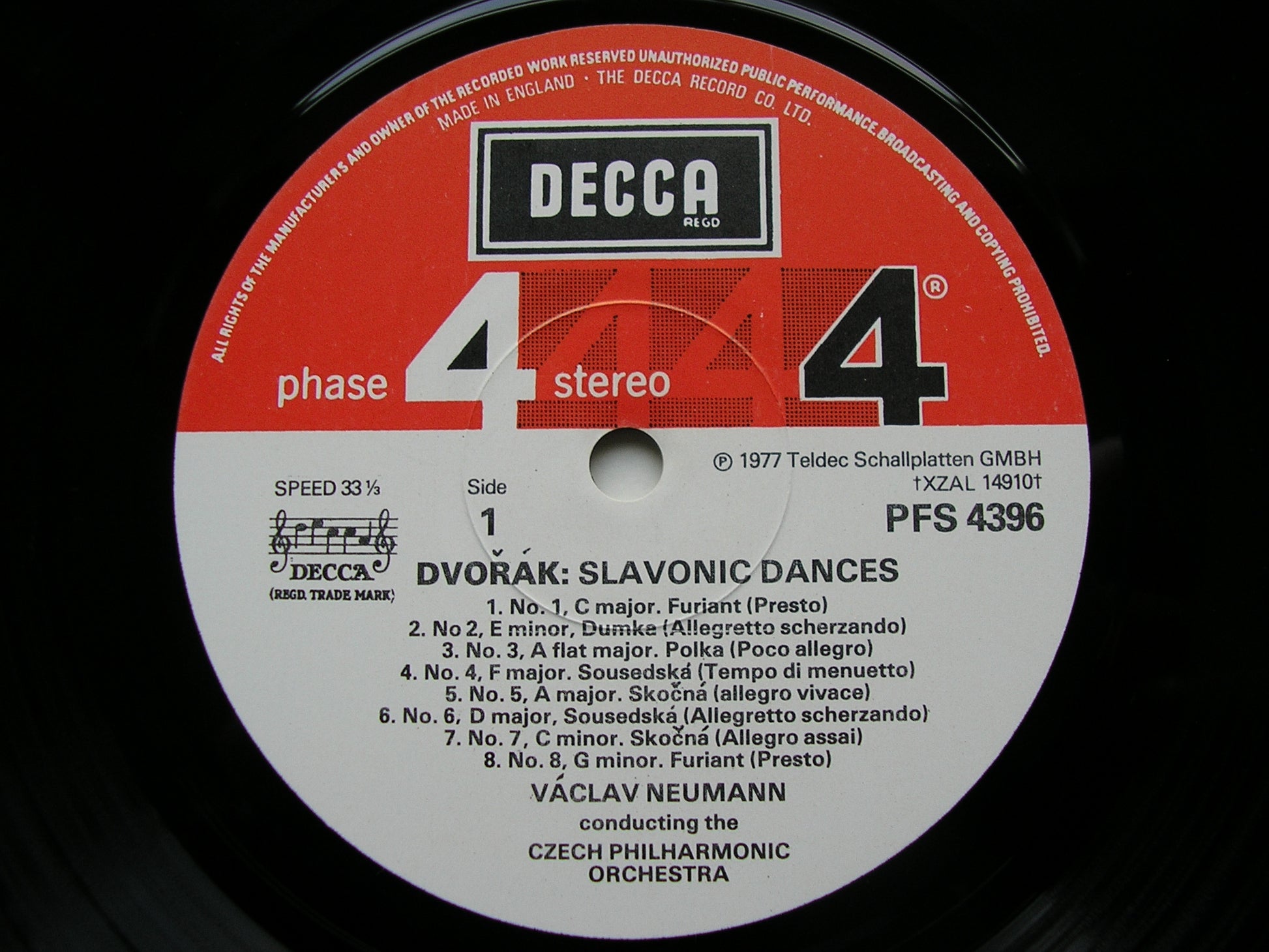 PFS 4396  DVORAK: SLAVONIC DANCES     CZECH PHILHARMONIC ORCHESTRA / VACLAV NEUMANN