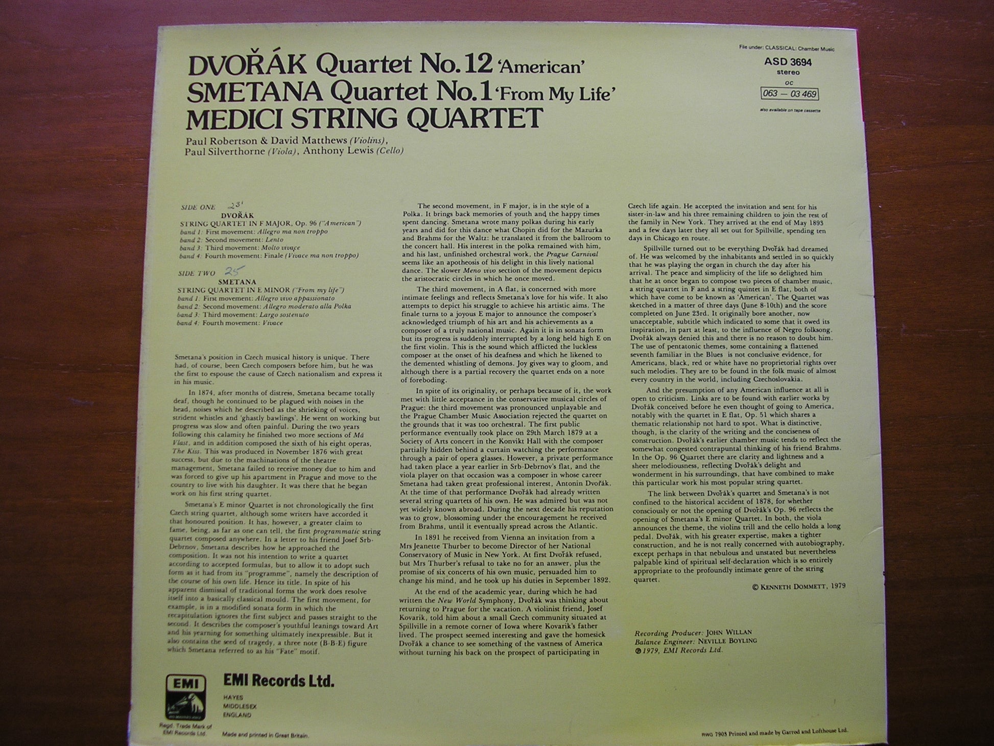 ASD 3694  DVORAK: STRING QUARTET No. 12 / SMETANA: STRING QUARTET No. 1    MEDICI STRING QUARTET