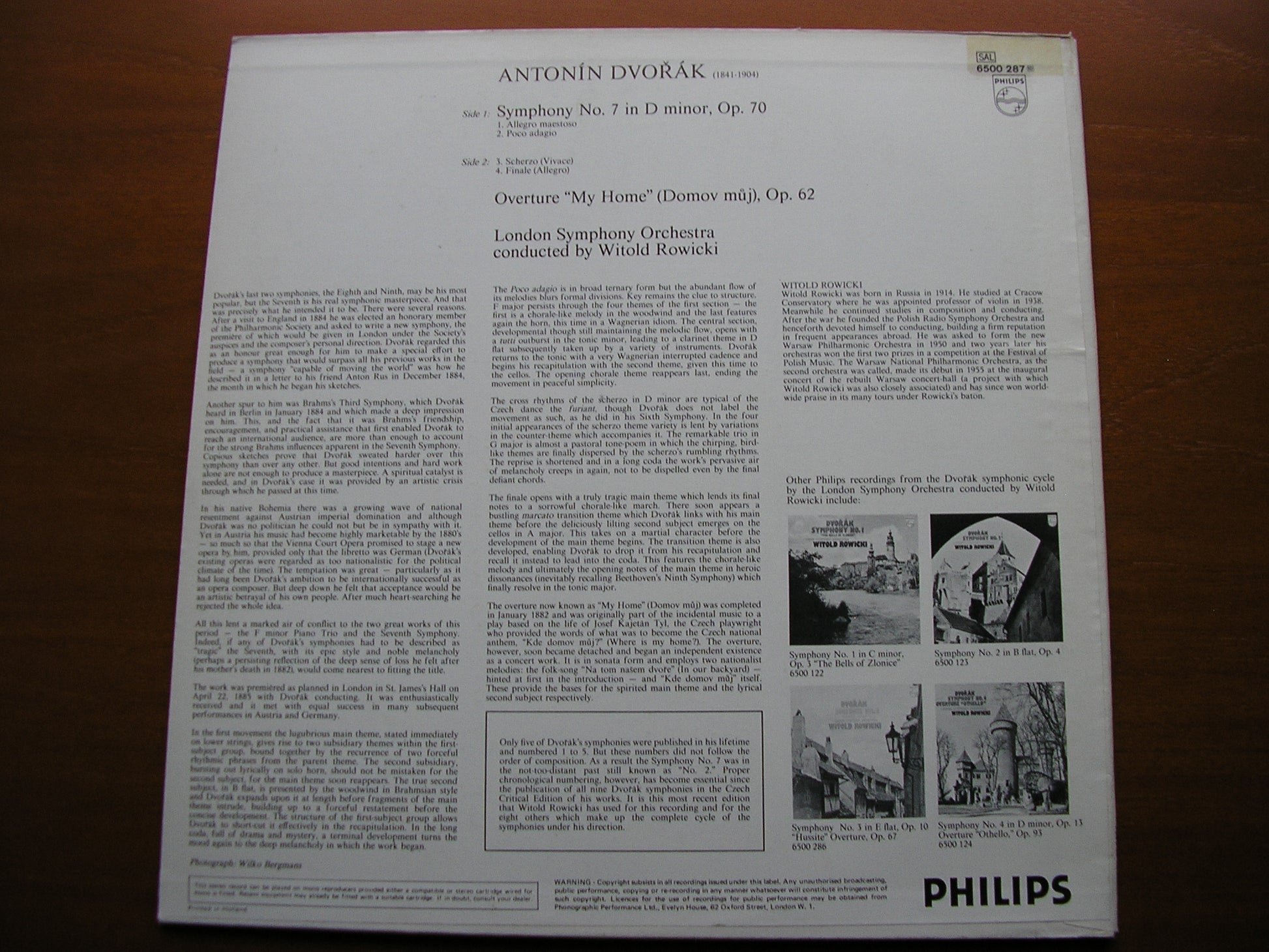 6500 287  DVORAK: SYMPHONY No. 7 / OVERTURE My Home     WITOLD ROWICKI / LONDON SYMPHONY ORCHESTRA