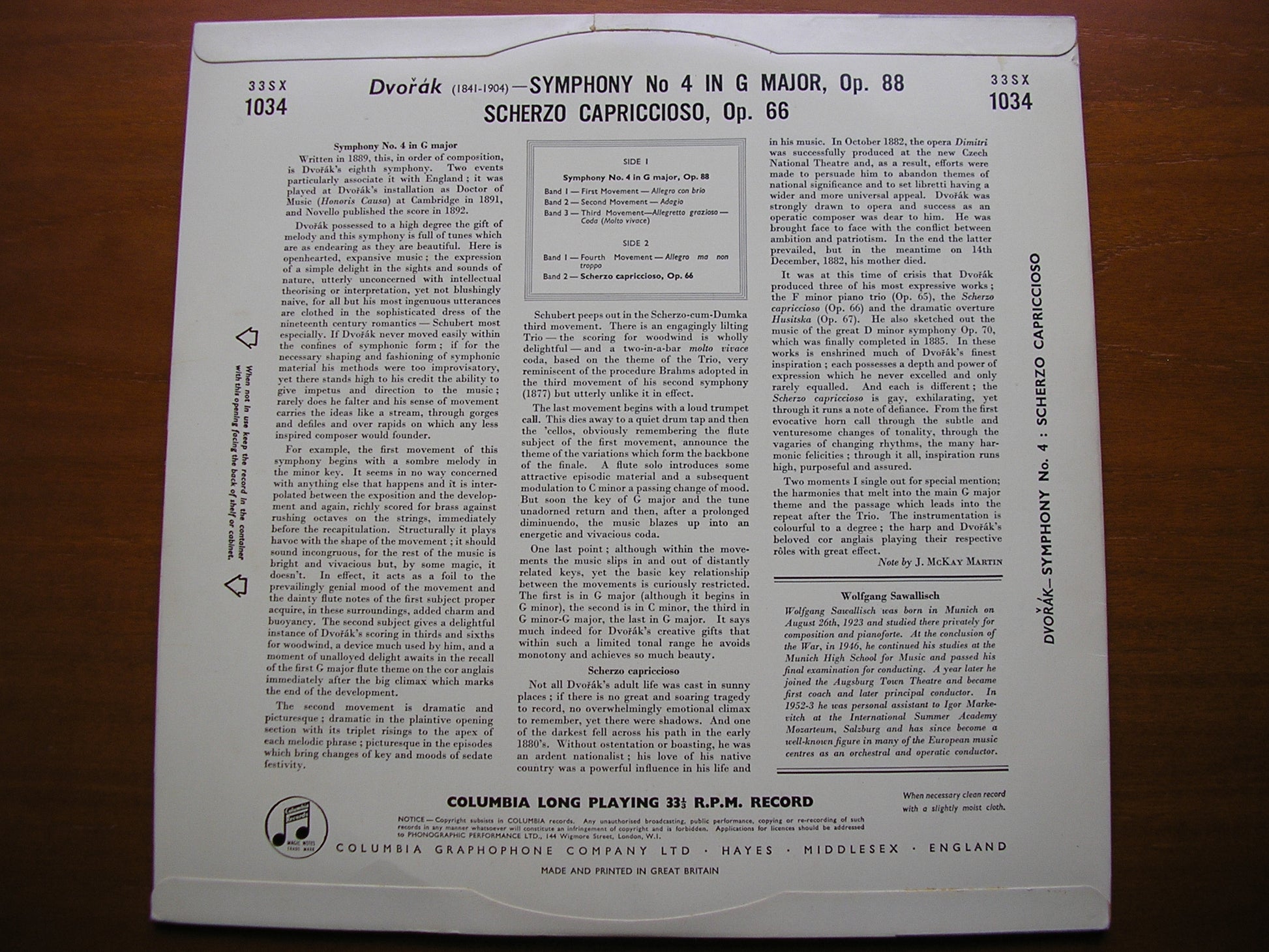 33SX 1034  DVORAK: SYMPHONY No. 8 / SCHERZO CAPRICCIOSO    WOLFGANG SAWALLISCH / PHILHARMONIA ORCHESTRA