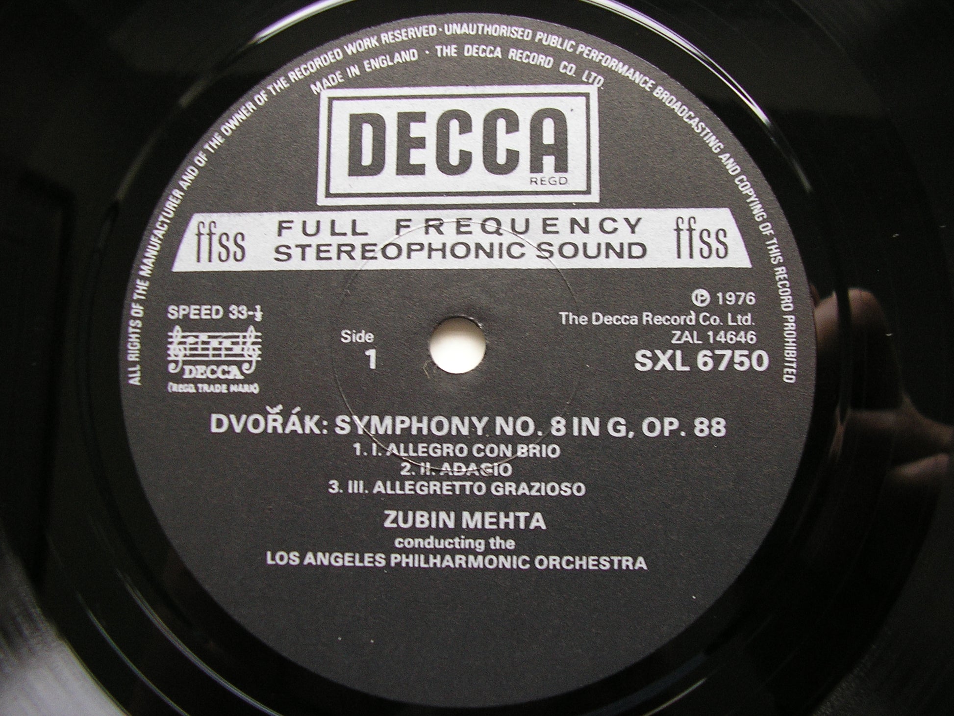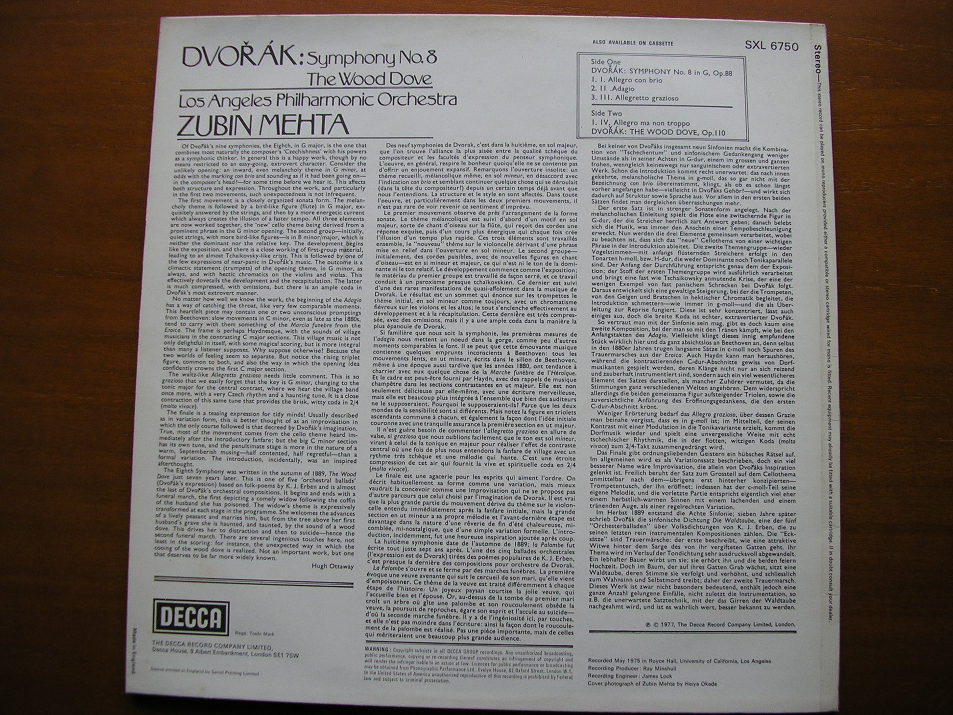 SXL 6750  DVORAK: SYMPHONY No. 8 / THE WOOD DOVE     ZUBIN MEHTA / LOS ANGELES PHILHARMONIC ORCHESTRA