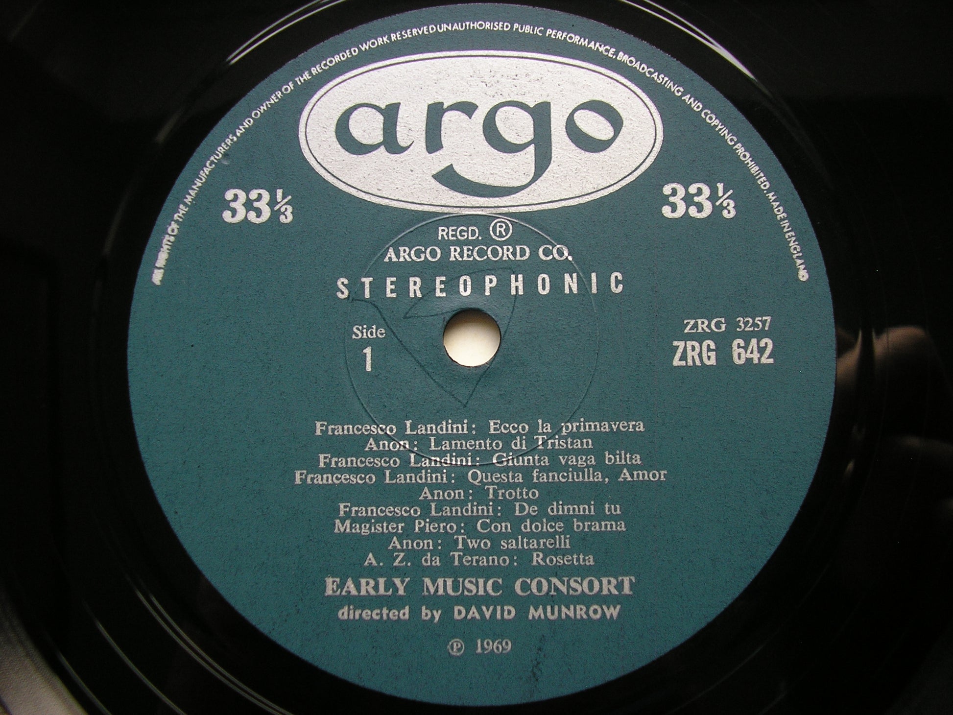 ZRG 642  LANDINI / PIERO / GIOVANNI DI FIRENZE / LORENZO DI FIRENZE / JACOPO DI BOLOGNA       EARLY MUSIC CONSORT / DAVID MUNROW