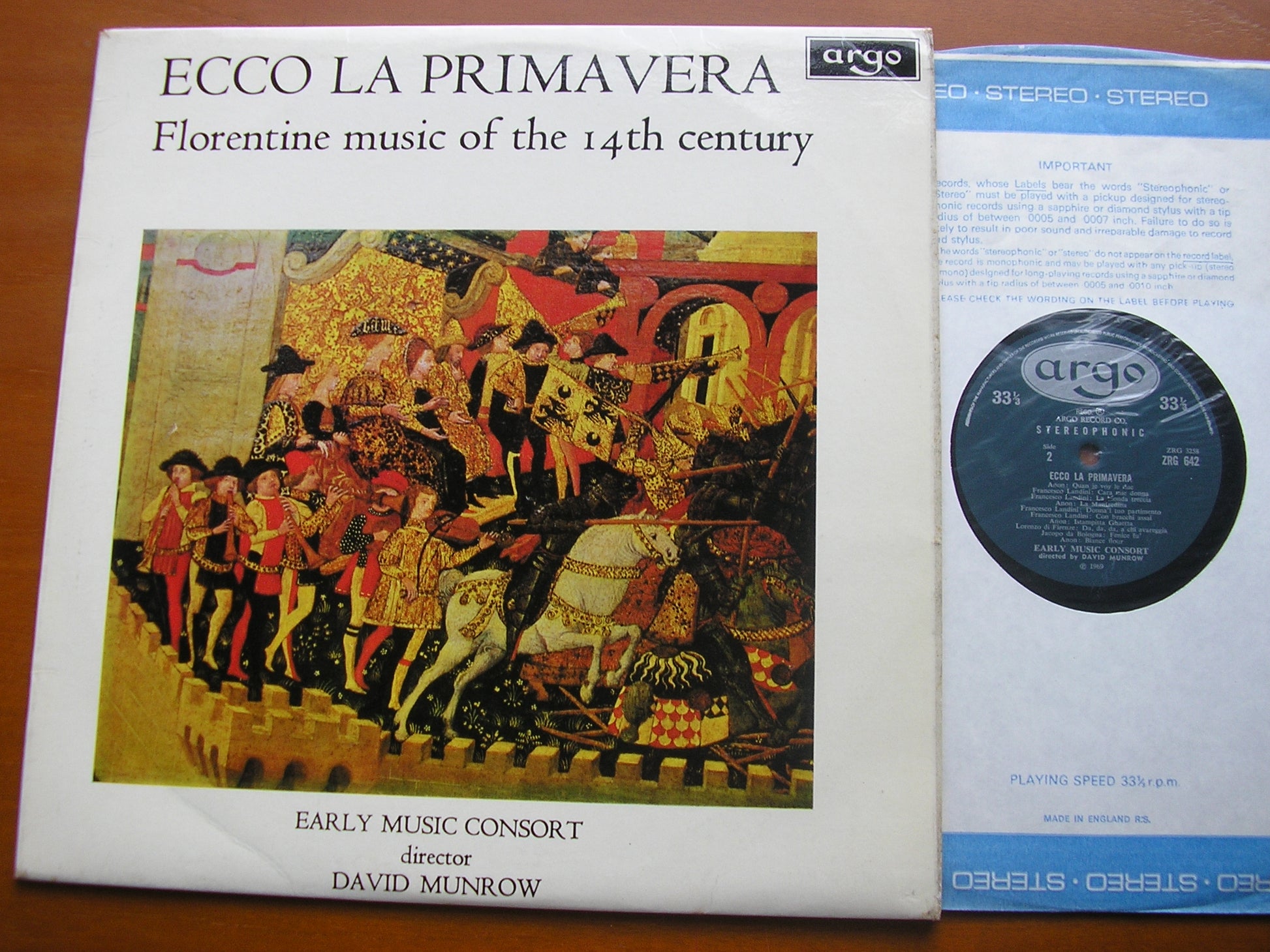 ECCO LA PRIMAVERA: FLORENTINE MUSIC OF THE 14th CENTURY EARLY MUSIC CONSORT / MUNROW ZRG 642