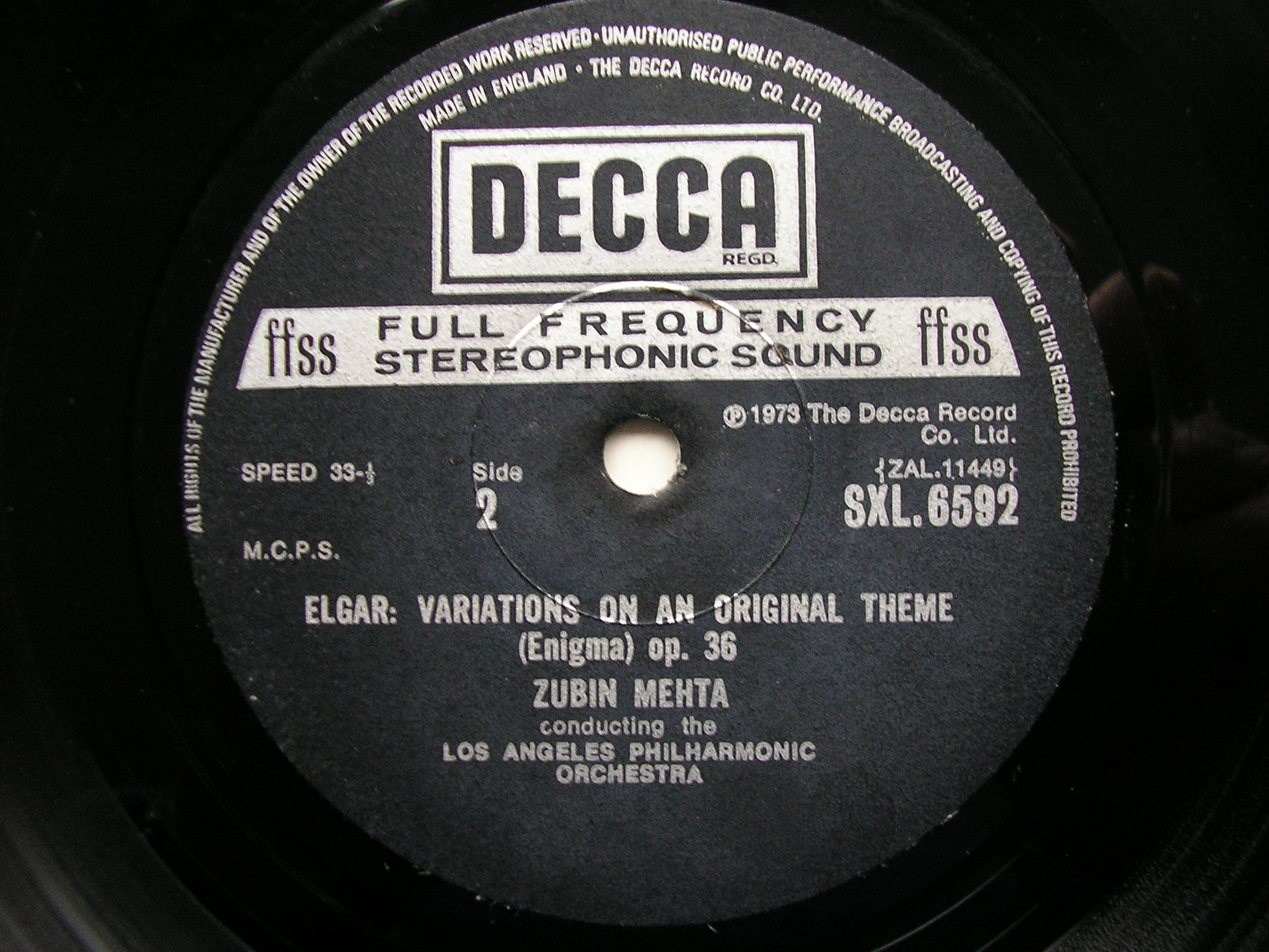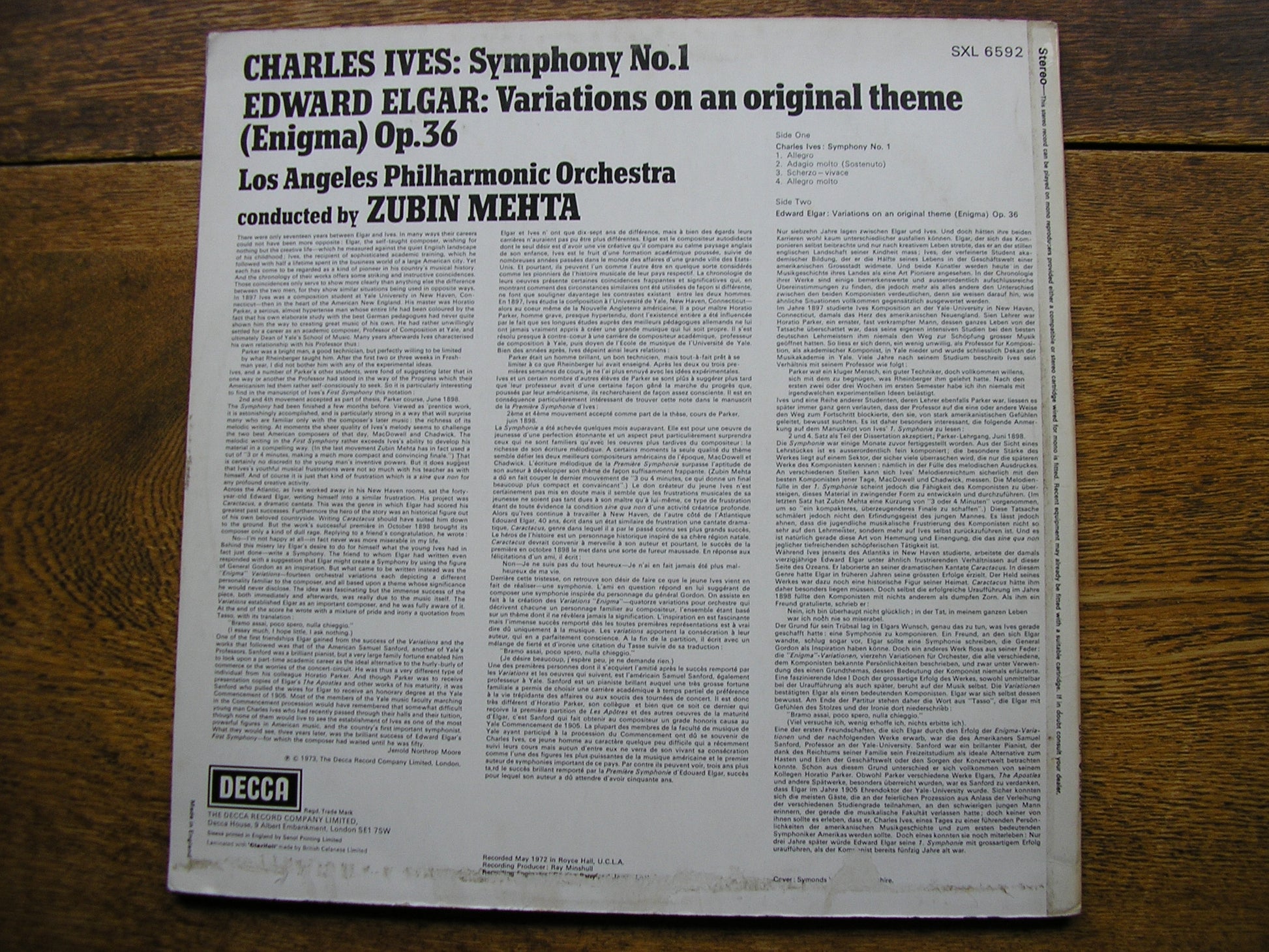 SXL 6592 ELGAR: ENIGMA VARIATIONS / IVES: SYMPHONY No. 1    ZUBIN MEHTA / LOS ANGELES PHILHARMONIC ORCHESTRA