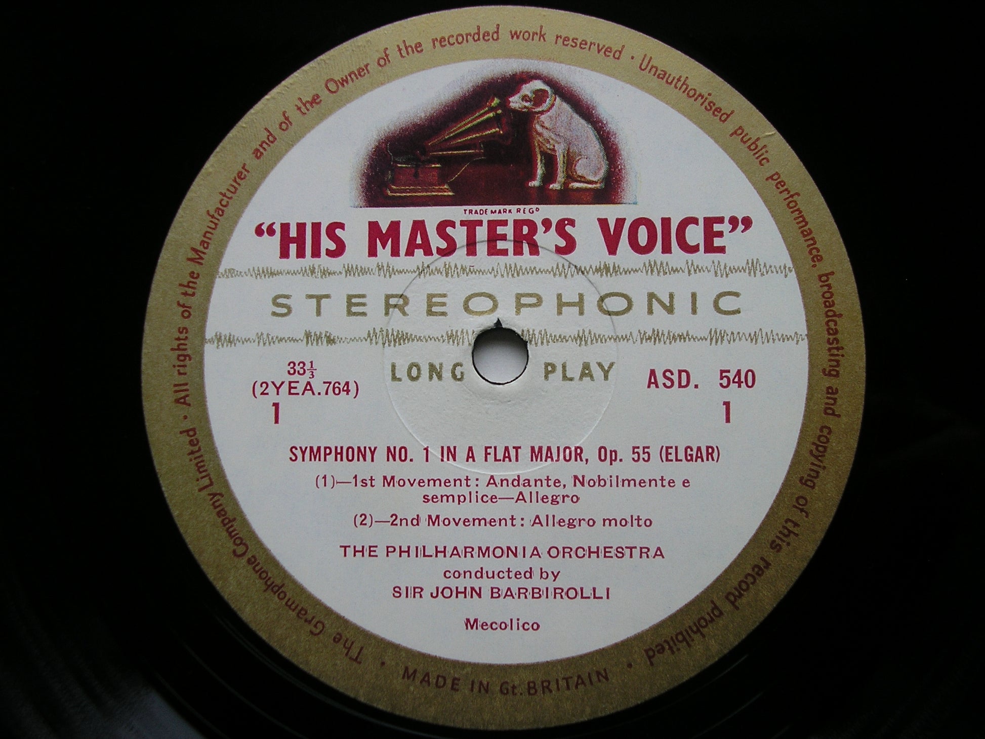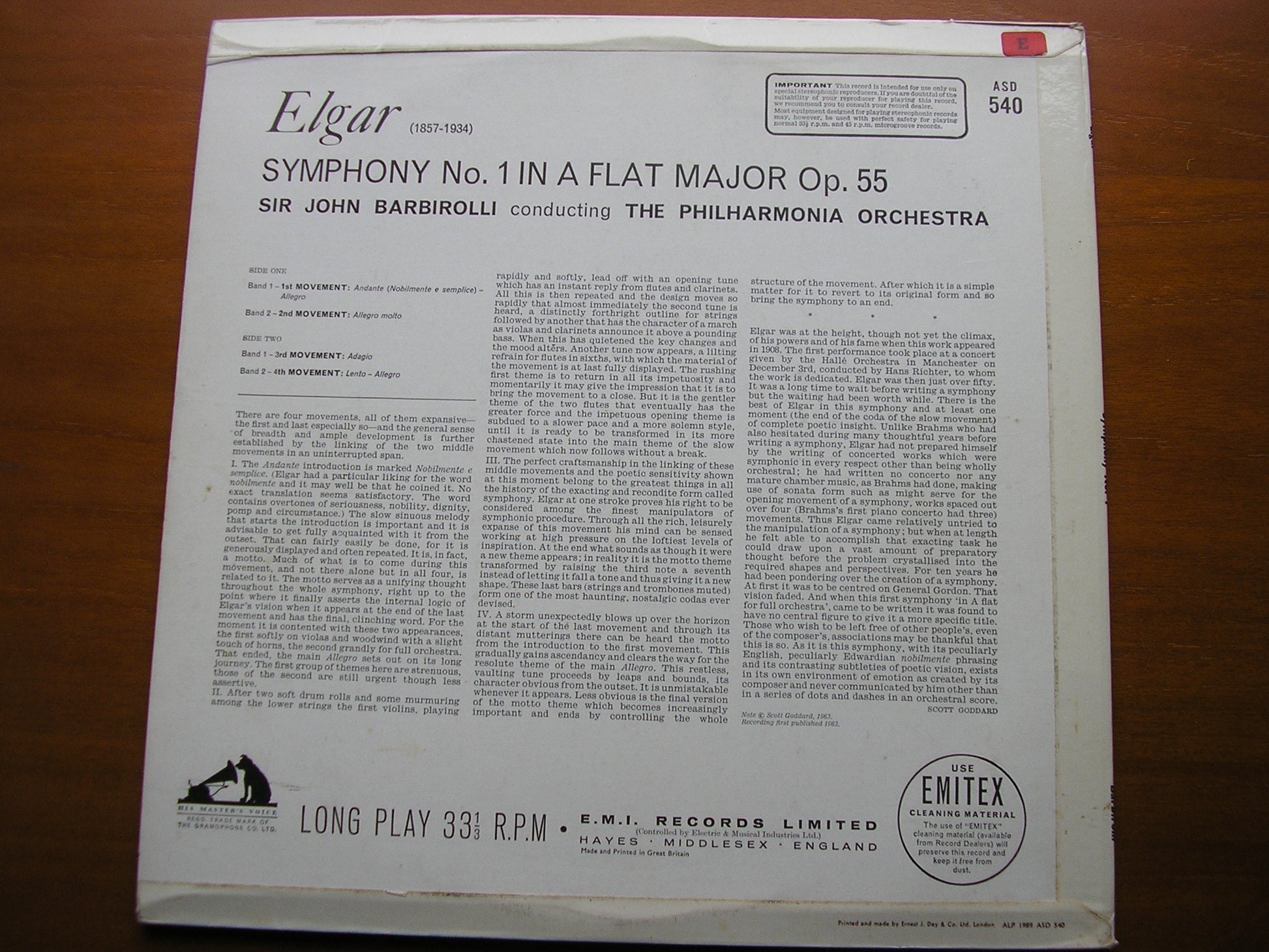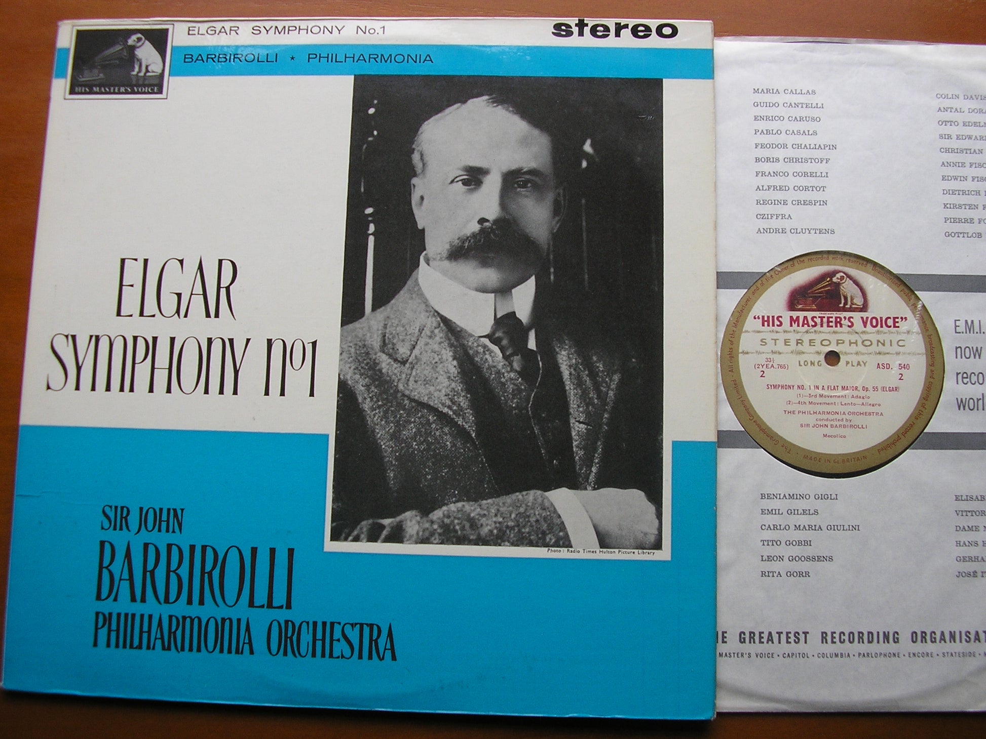 ASD 540  ELGAR: SYMPHONY No. 1    SIR JOHN BARBIROLLI / PHILHARMONIA ORCHESTRA