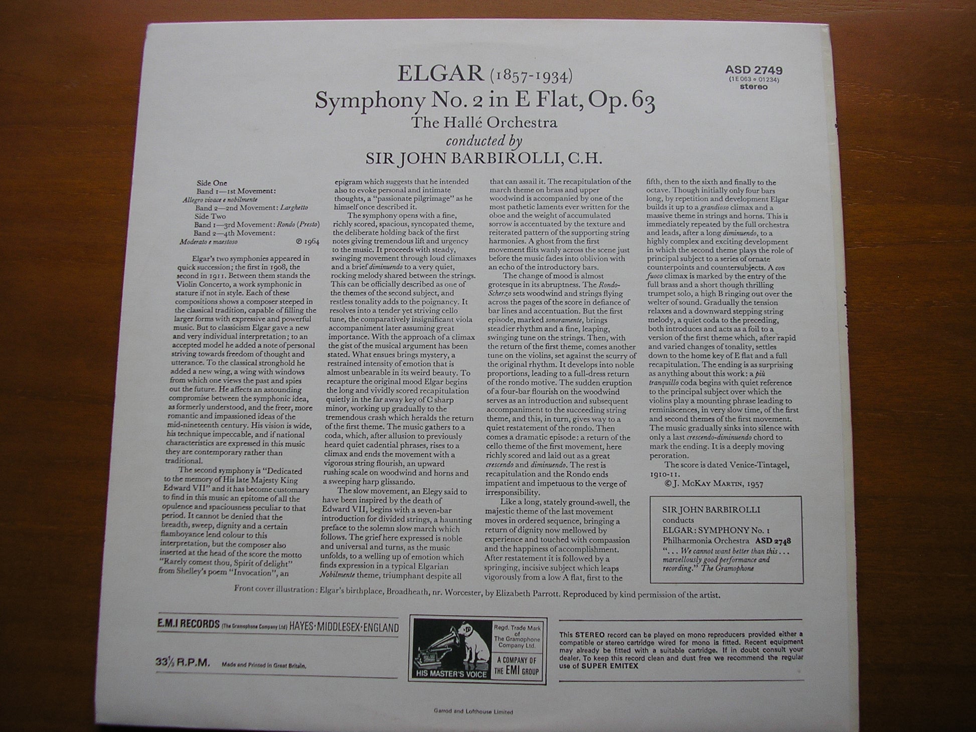 ASD 2749  ELGAR:  SYMPHONY No. 2      SIR JOHN BARBIROLLI / HALLE ORCHESTRA