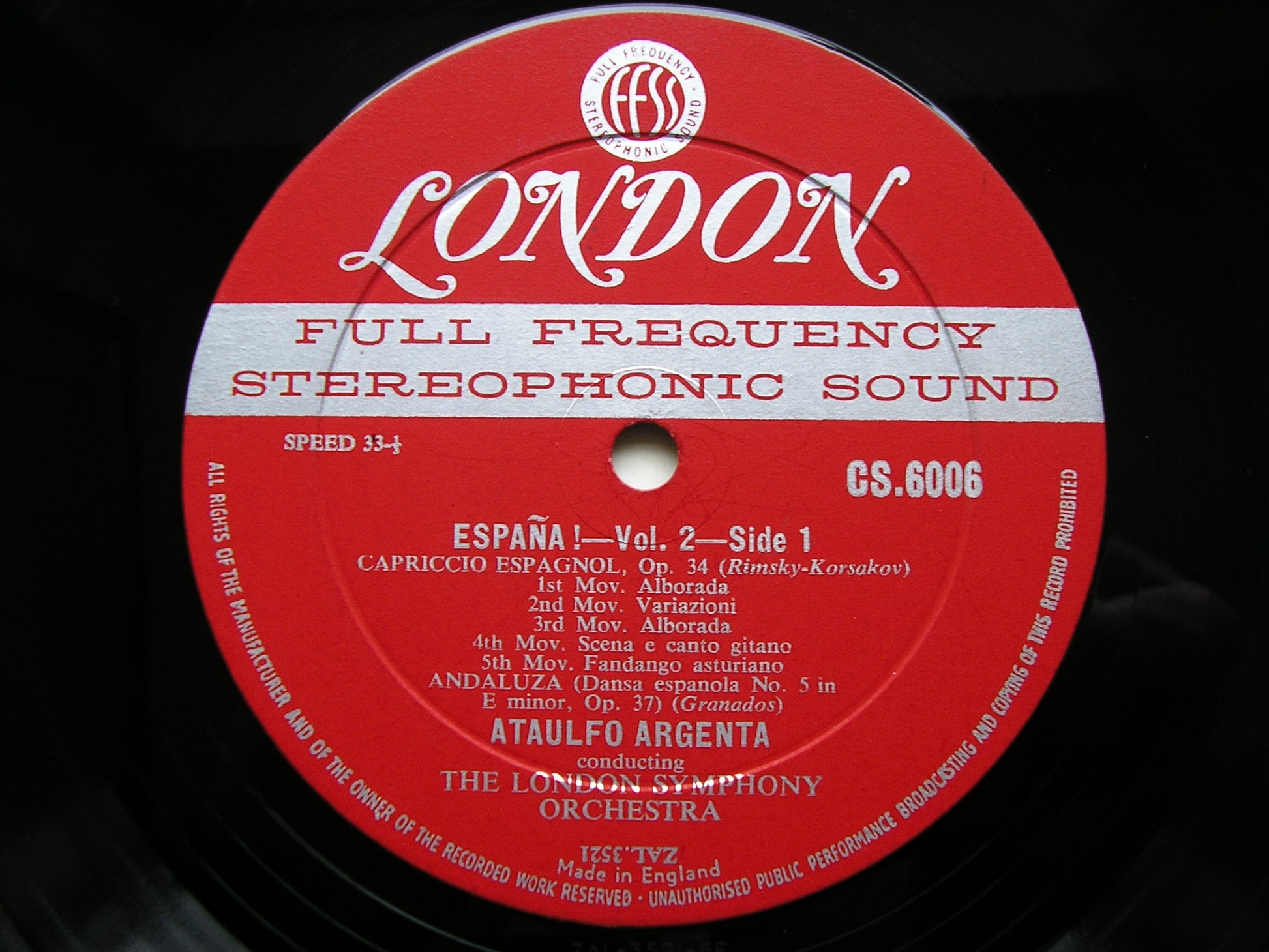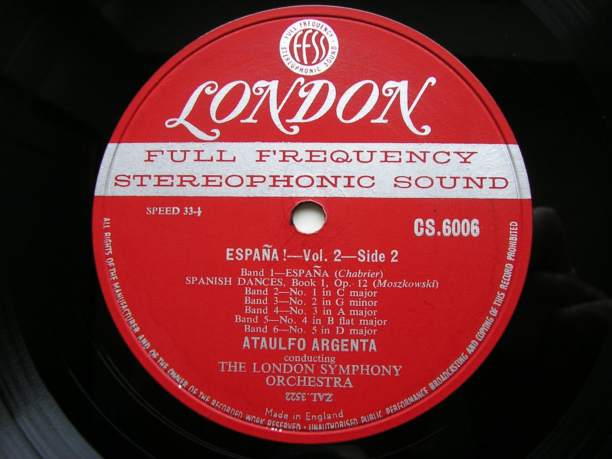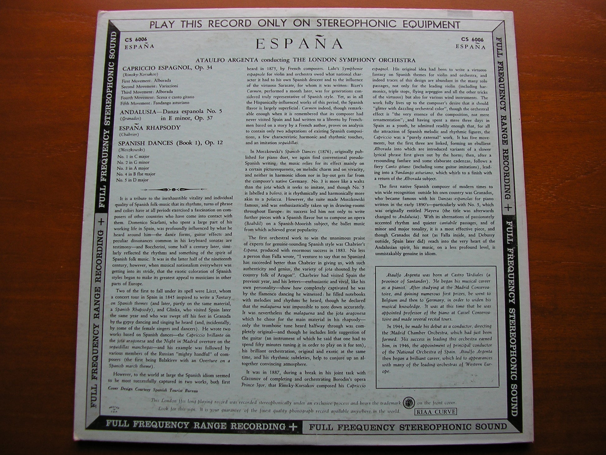CS 6006  CHABRIER: ESPANA / RIMSKY-KORSAKOV: CAPRICCIO ESPAGNOL / GRANADOS: ANDALUSIA  /  MOSZKOWSKI: SPANISH DANCES   ATAULFO ARGENTA / LONDON SYMPHONY ORCHESTRA