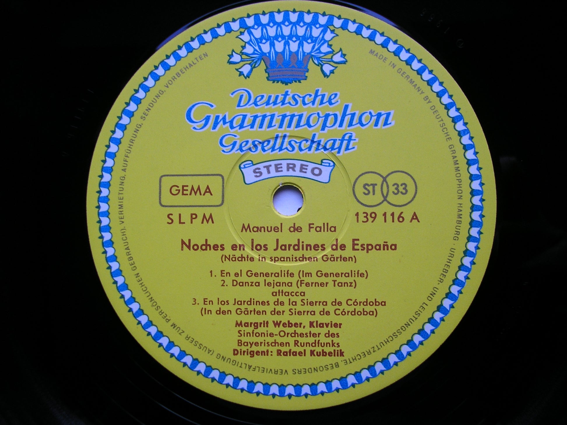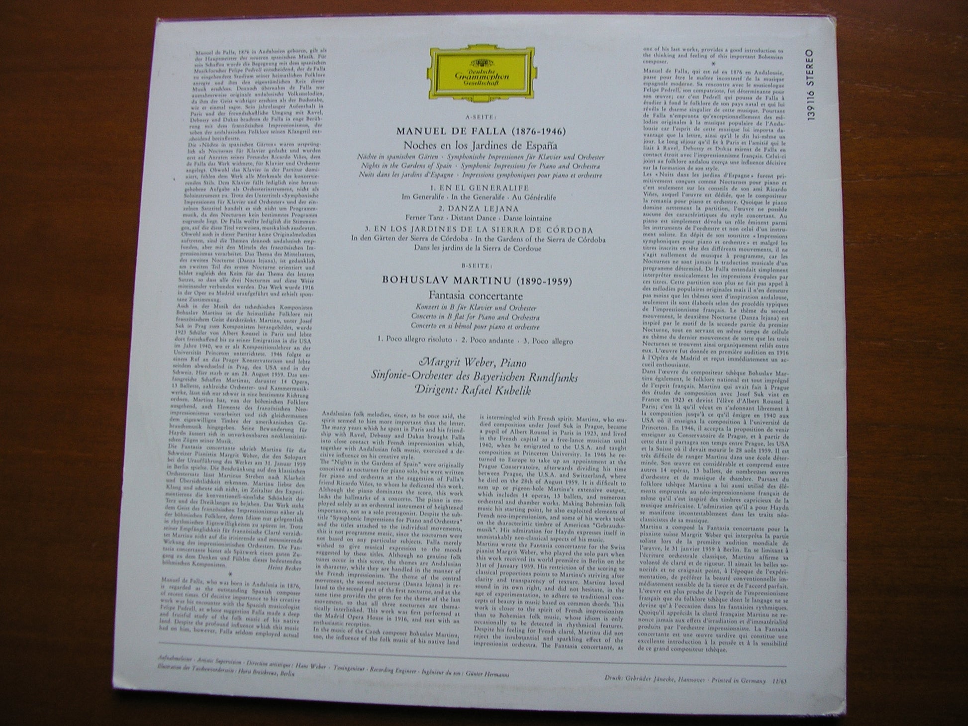 139 116  FALLA: NIGHTS IN THE GARDENS OF SPAIN / MARTINU: FANTASIA CONCERTANTE     MARGRIT WEBER / BAVARIAN RADIO SYMPHONY ORCHESTRA / RAFAEL KUBELIK