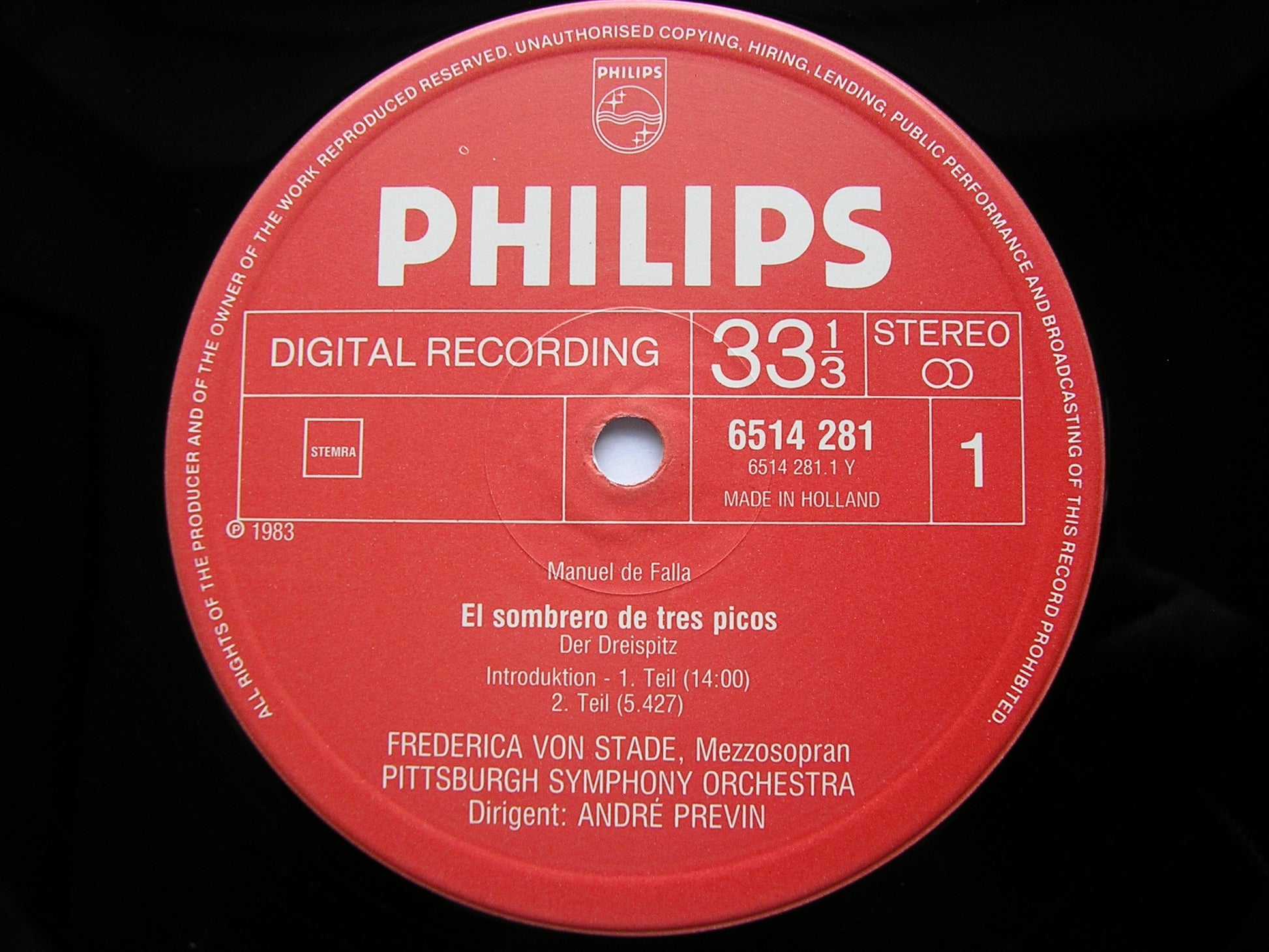 6514 281  FALLA: THE THREE CORNERED HAT     FREDERICA VON STADE / PITTSBURGH SYMPHONY ORCHESTRA / ANDRE PREVIN