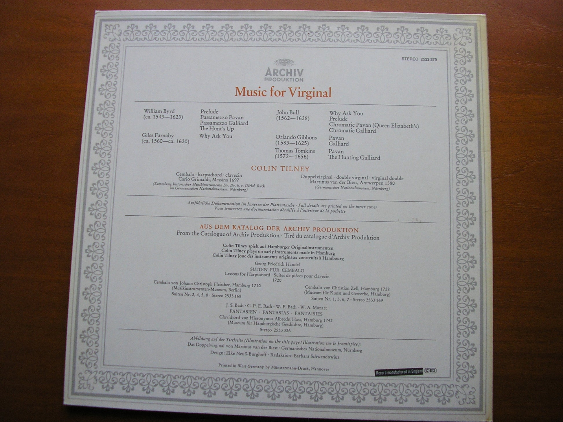 2533 379  FARNABY / BULL / BYRD / TOMKINS / GIBBONS: MUSIC FOR VIRGINAL    COLIN TILNEY