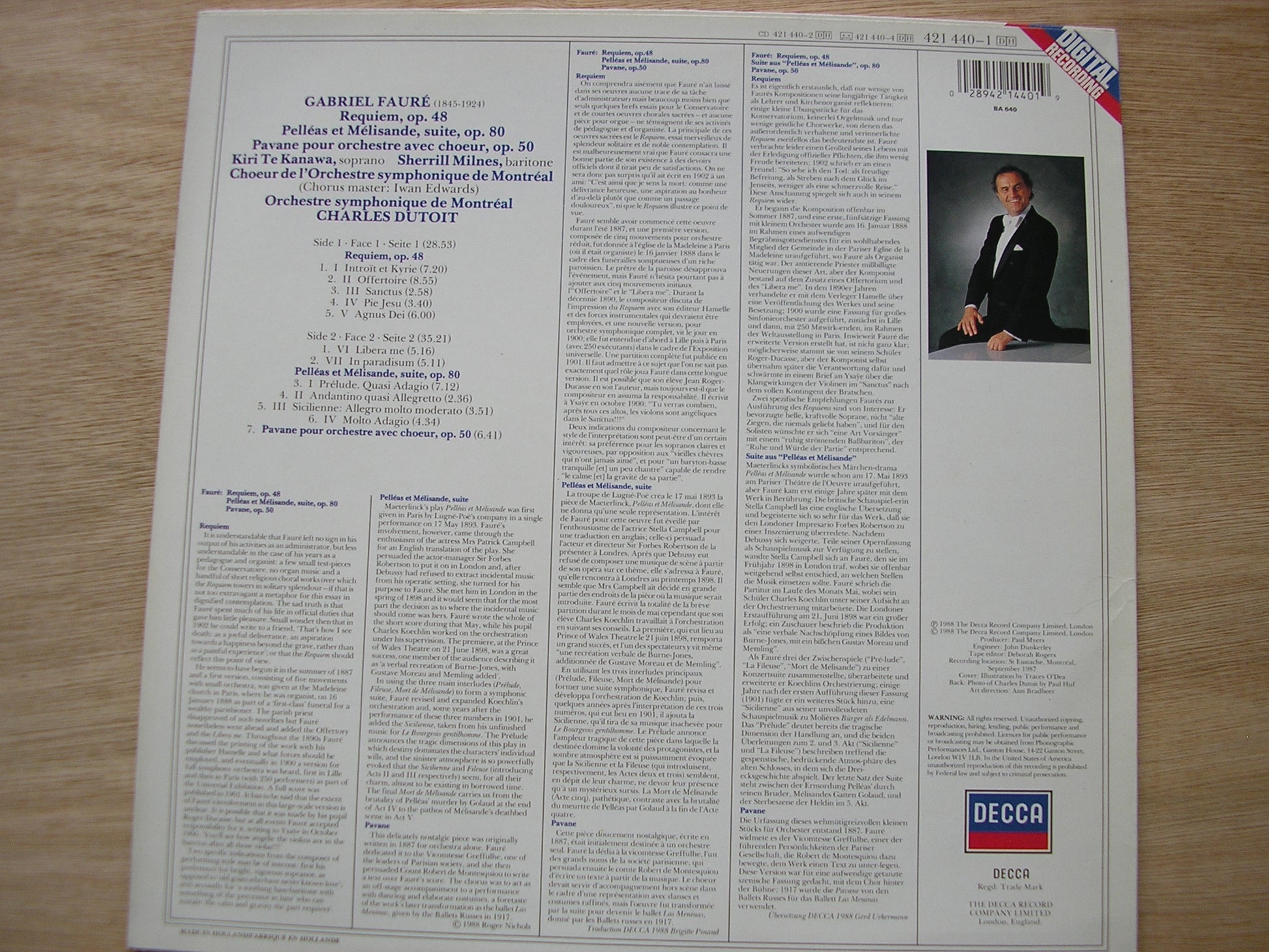 421 440  FAURE: REQUIEM / PELLEAS & MELISANDE Suite    KIRI TE KANAWA / SHERRILL MILNES / MONTREAL SYMPHONY ORCHESTRA