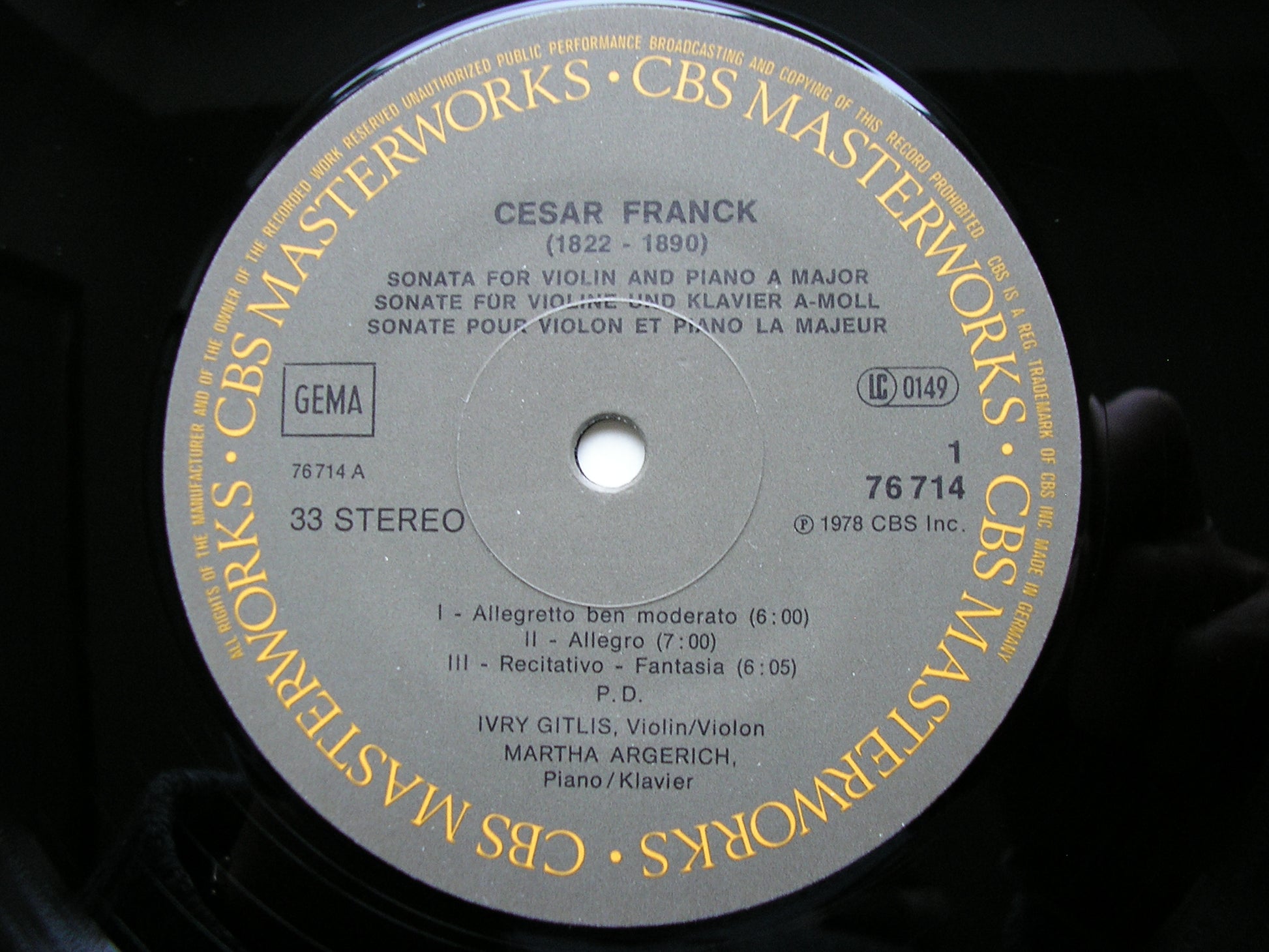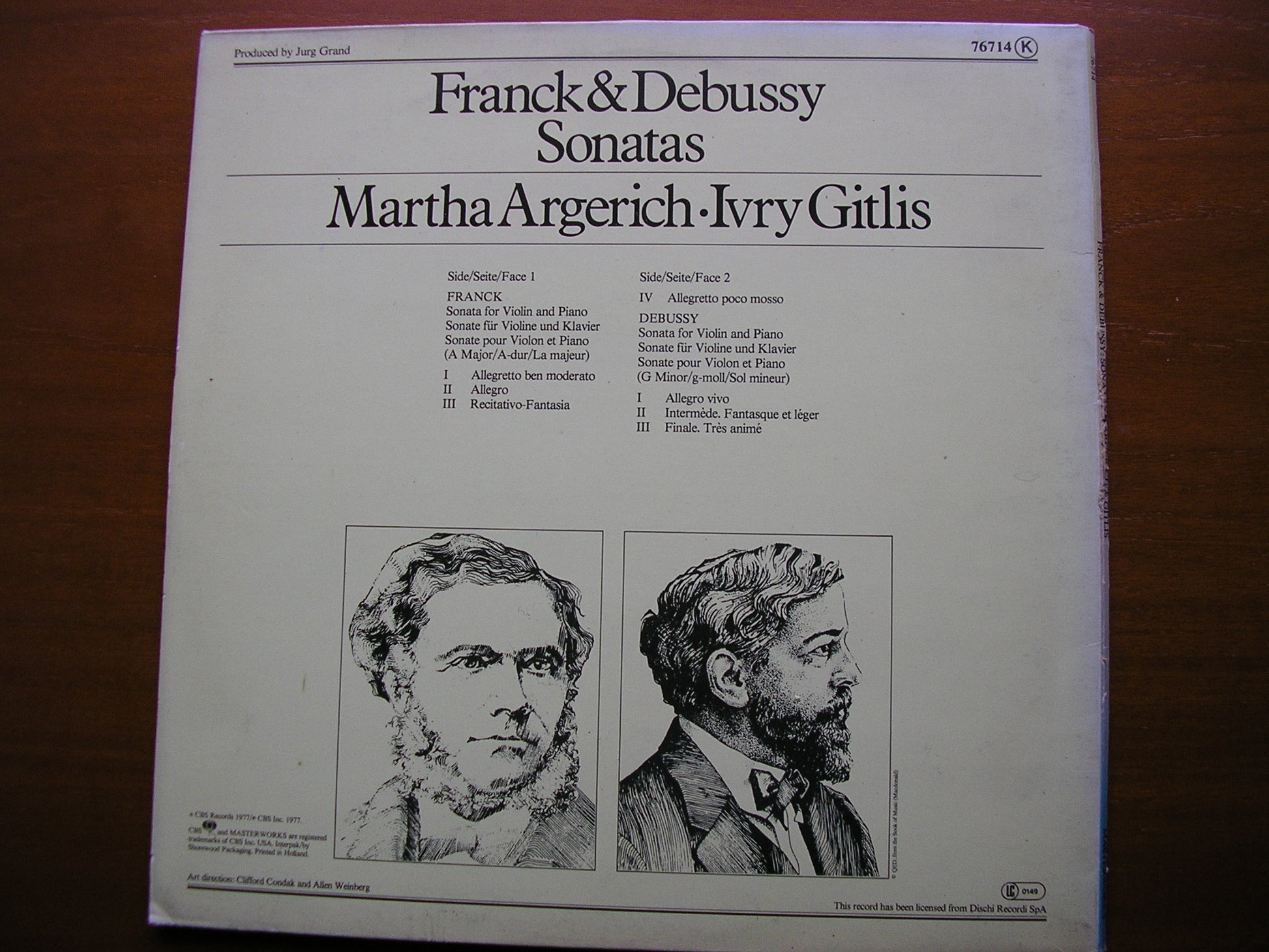 76714  FRANCK: SONATA FOR VIOLIN & PIANO in A  / DEBUSSY: SONATA FOR VIOLIN & PIANO in G     MARTHA ARGERICH, piano / IVRY GITLIS, violin