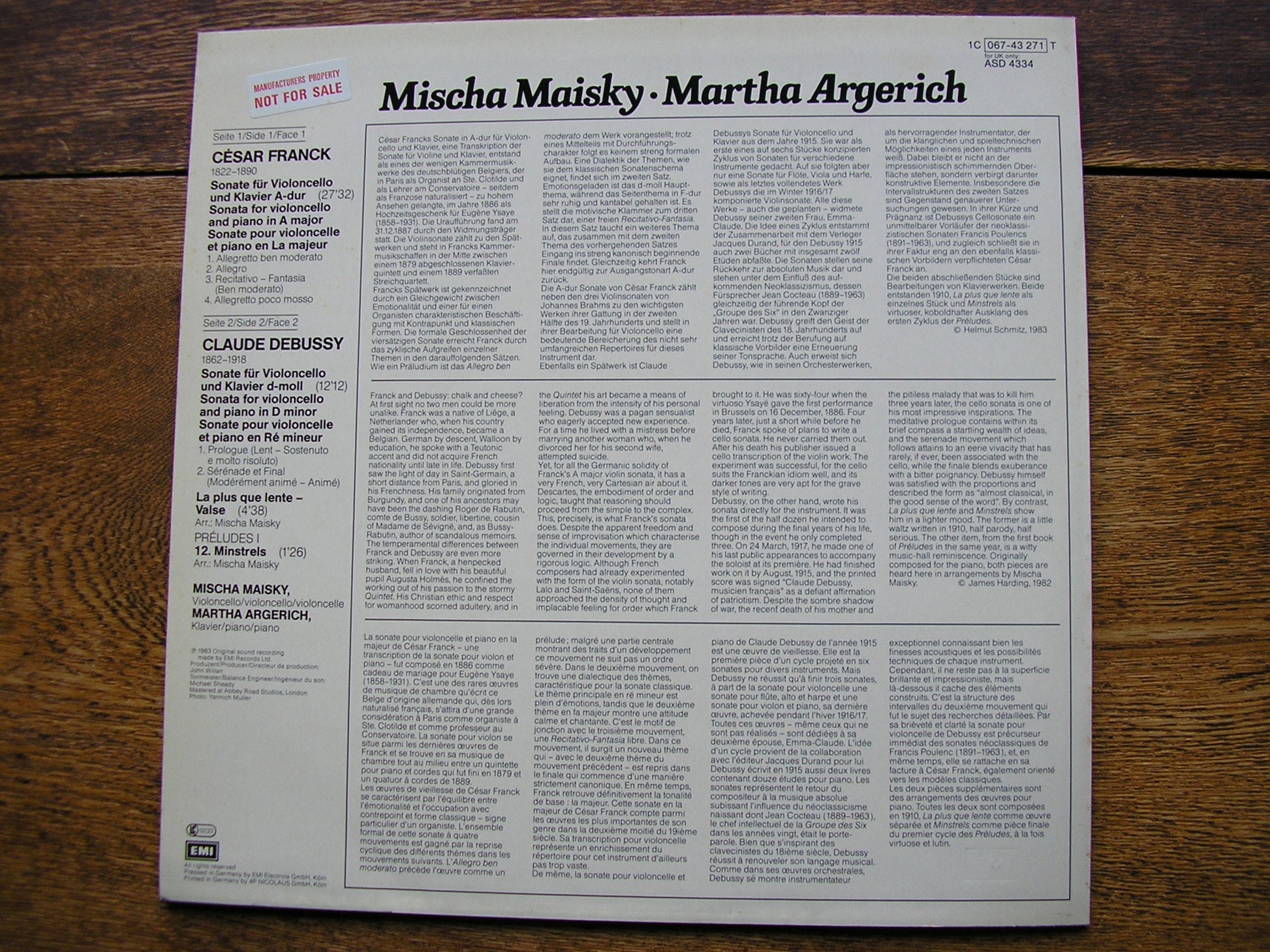 FRANCK: SONATA in A / DEBUSSY: SONATA in D ARGERICH / MAISKY ASD 4334