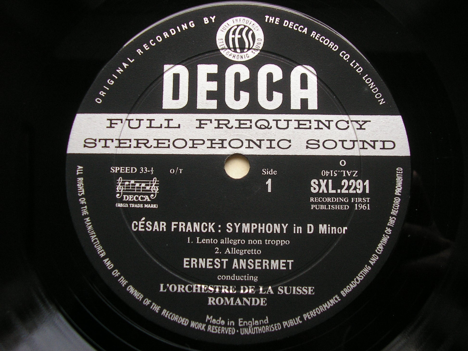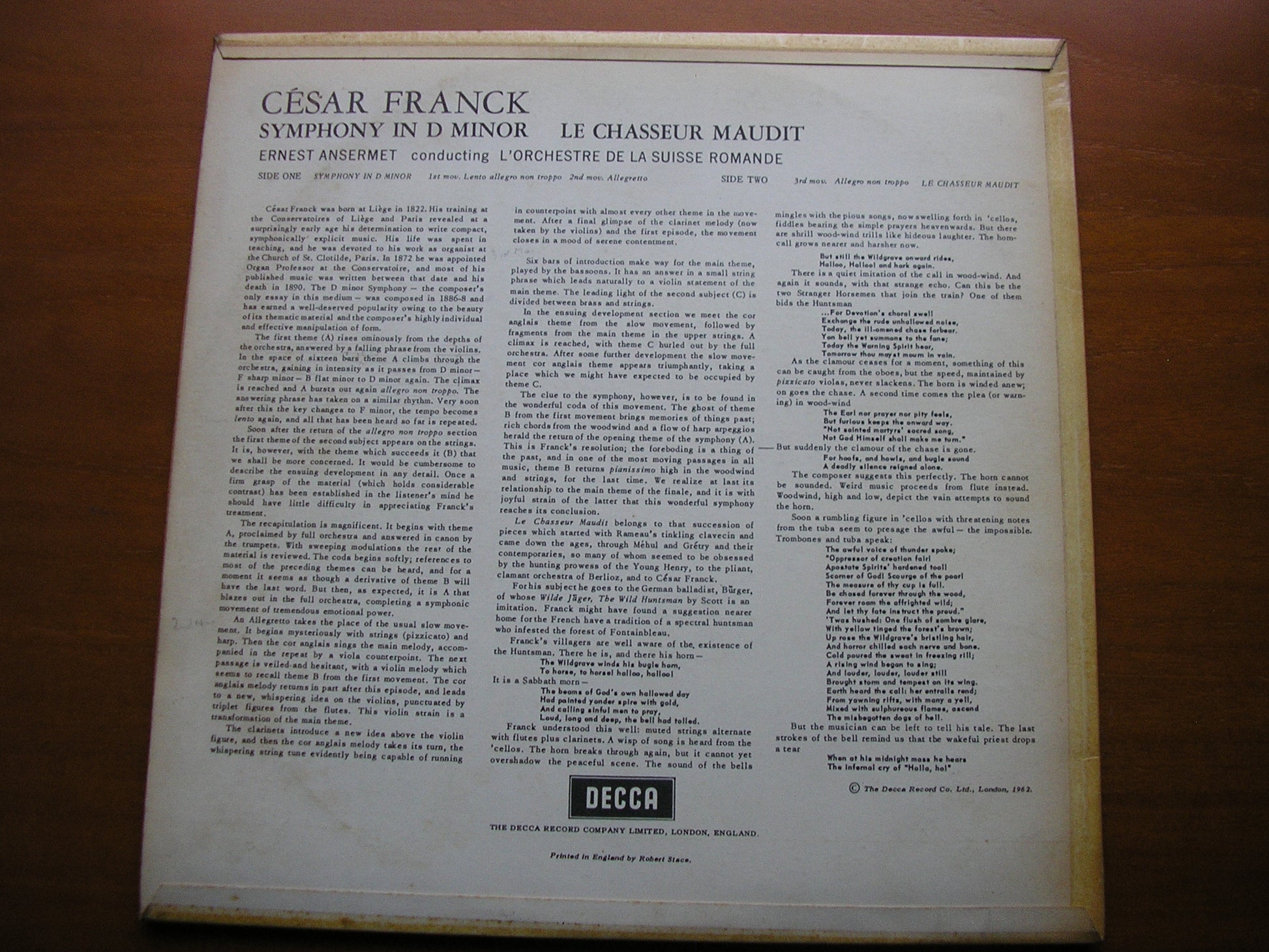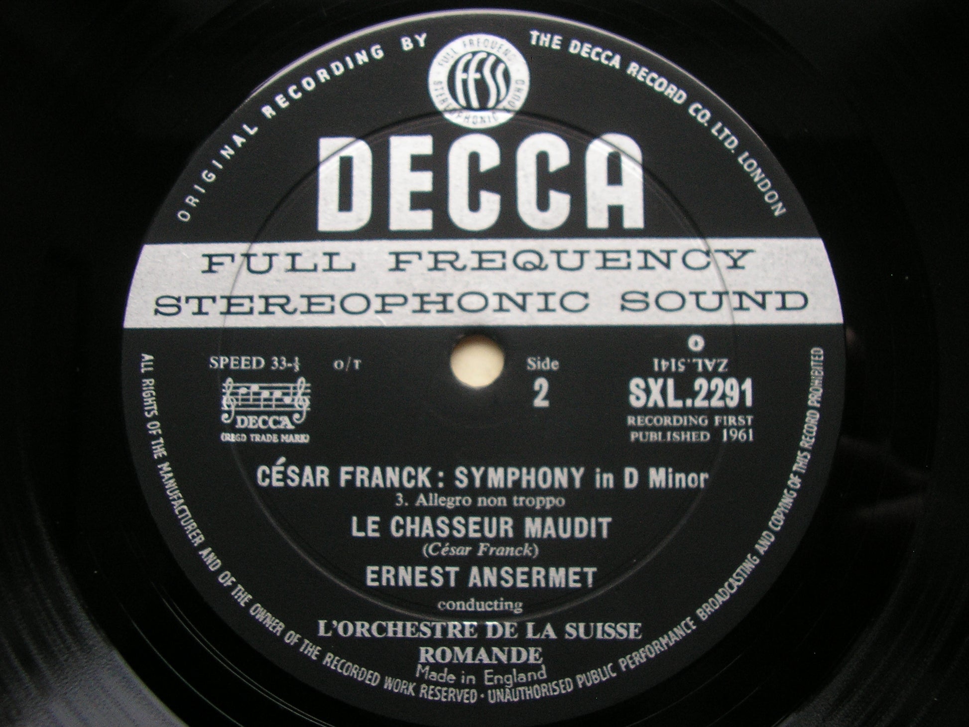 SXL 2291  FRANCK: SYMPHONY in D / LE CHASSEUR MAUDIT      ERNEST ANSERMET / SUISSE ROMANDE ORCHESTRA