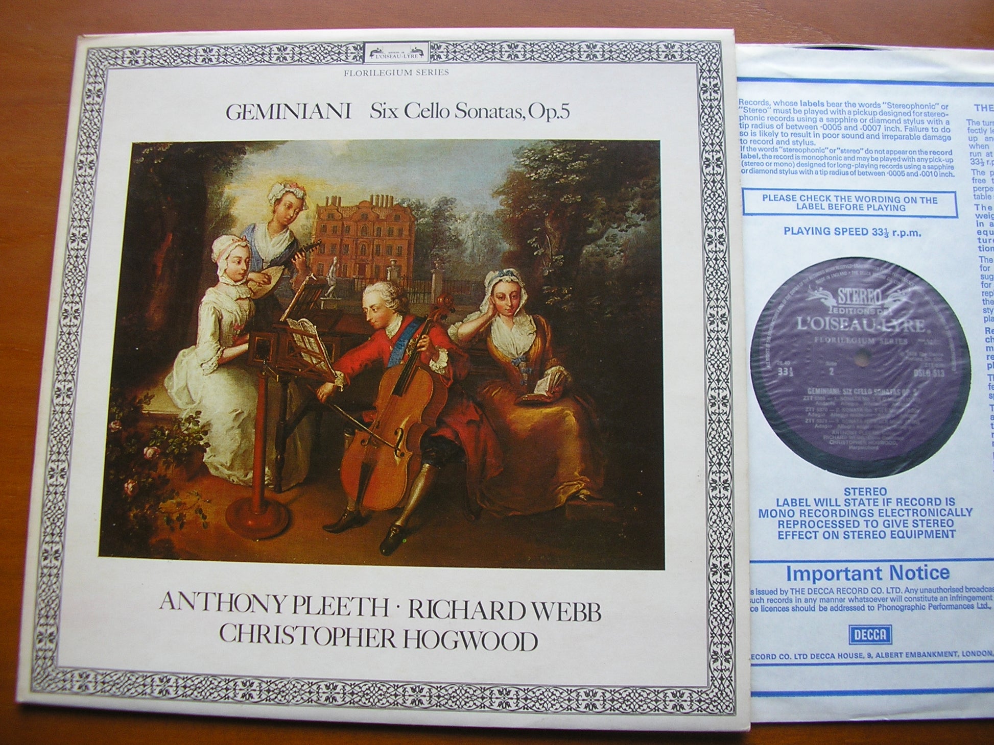 GEMINIANI: SIX CELLO SONATAS Op. 5 PLEETH / WEBB / HOGWOOD DSLO 513