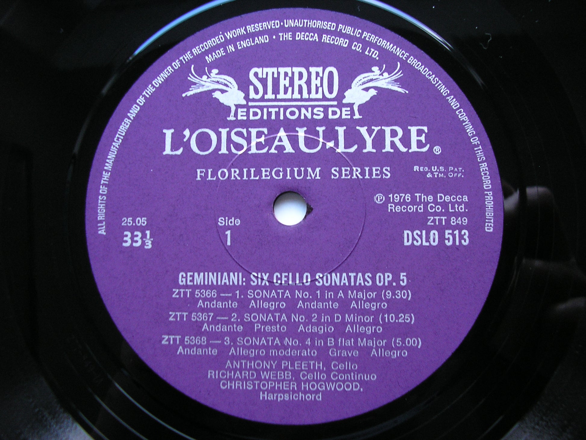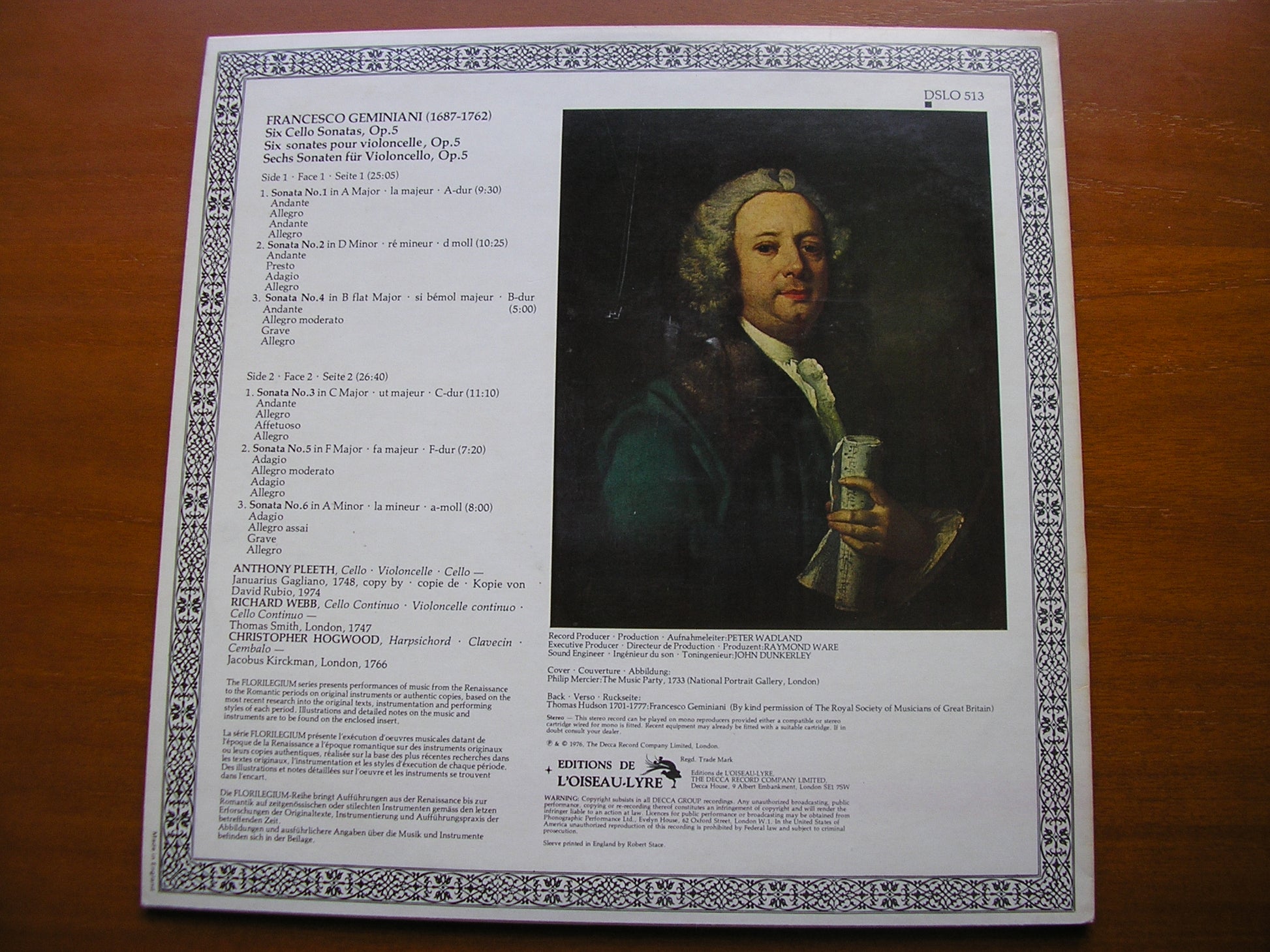 DSLO 513  GEMINIANI: SIX CELLO SONATAS      ANTHONY PLEETH / RICHARD WEBB / CHRISTOPHER HOGWOOD