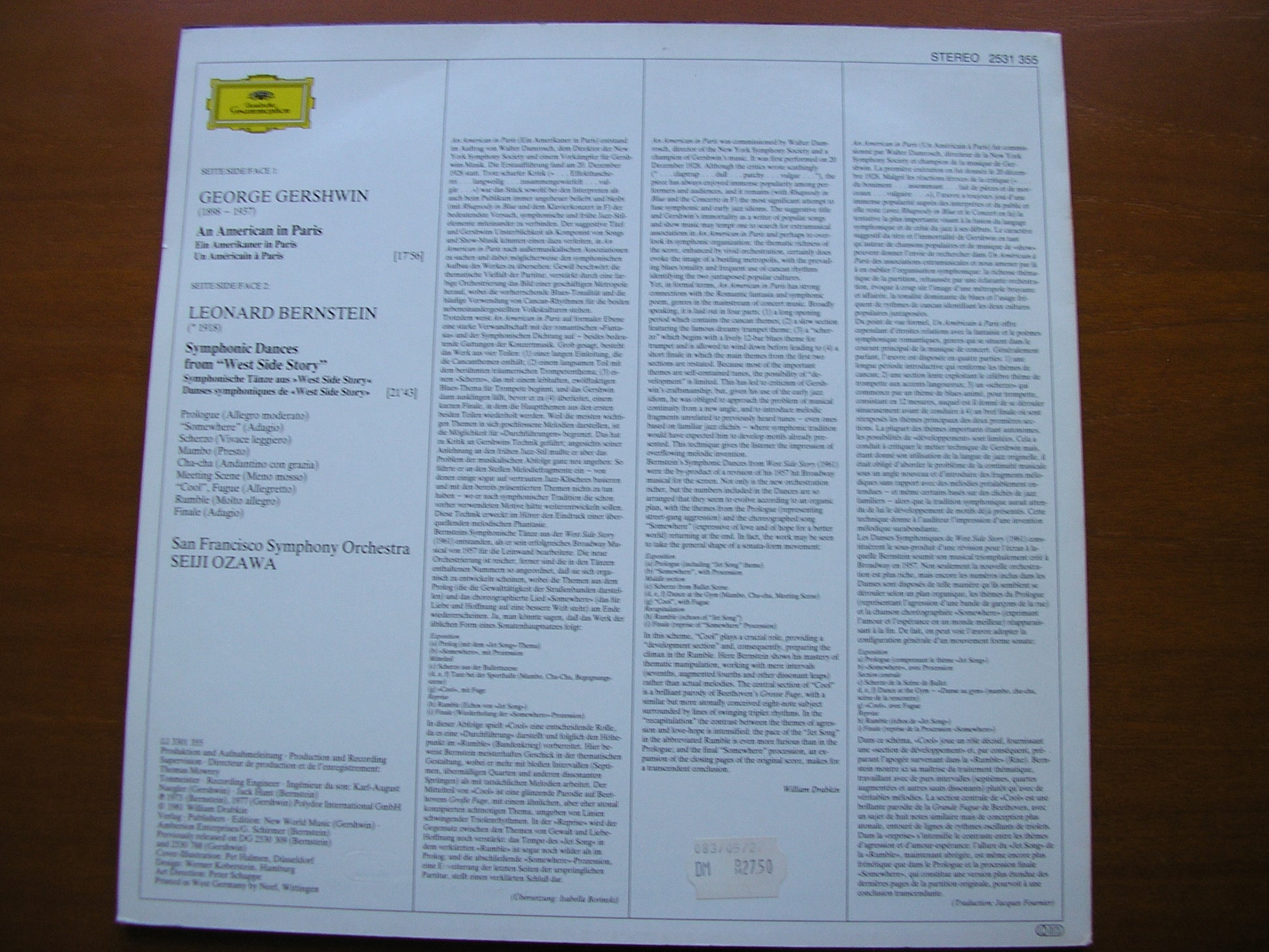 2531 355  GERSHWIN: AN AMERICAN IN PARIS / BERNSTEIN: SYMPHONIC DANCES     SEIJI OZAWA / SAN FRANCISCO SYMPHONY ORCHESTRA