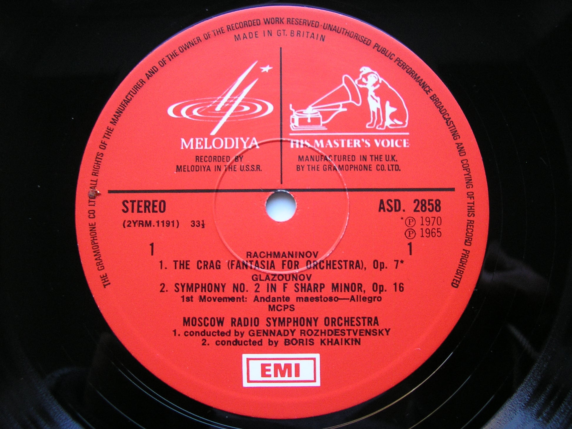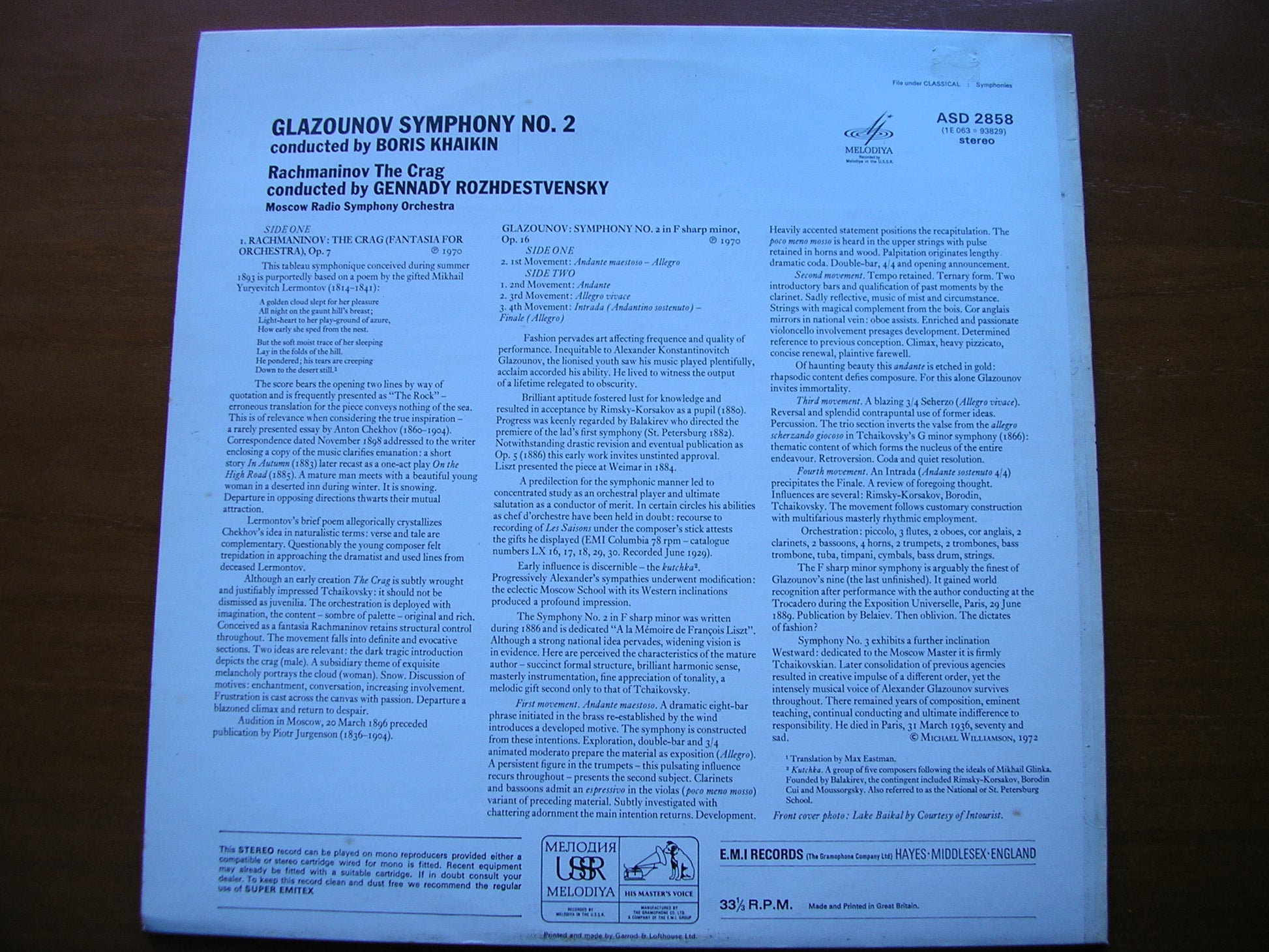 ASD 2858  GLAZOUNOV: SYMPHONY No. 5 / RACHMANINOV: THE CRAG    BORIS KHAIKIN / GENNADY ROZHDESTVENSKY / MOSCOW RADIO SYMPHONY ORCHESTRA