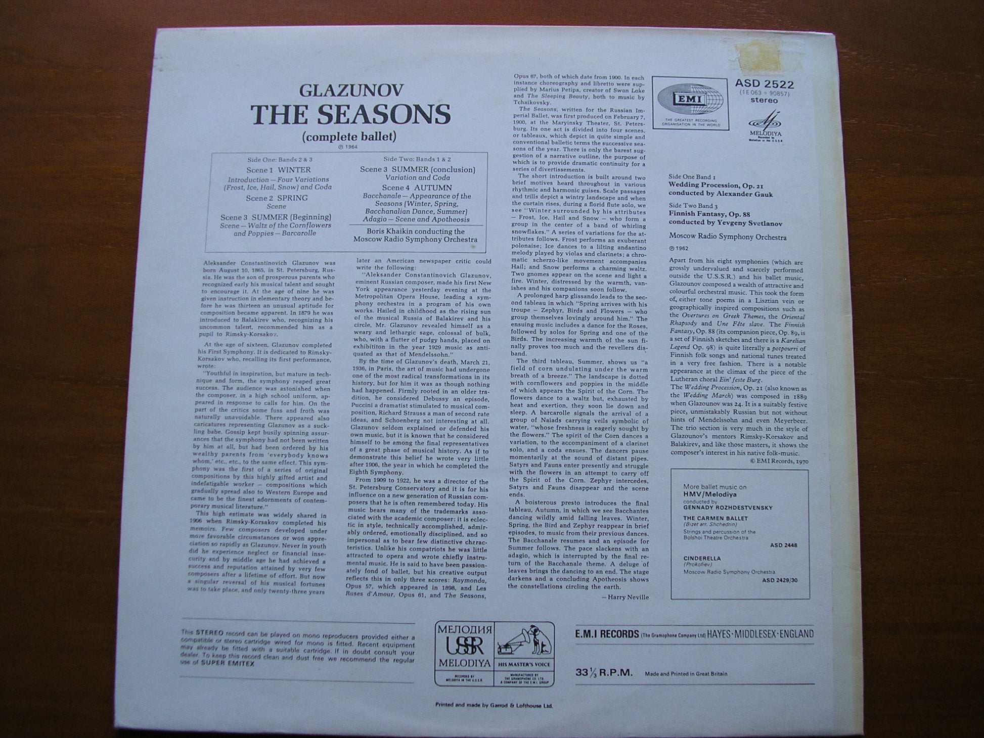 ASD 2522  GLAZOUNOV: THE SEASONS / FINNISH FANTASY / WEDDING PROCESSION    BORIS KHAIKIN / MOSCOW RADIO SYMPHONY ORCHESTRA