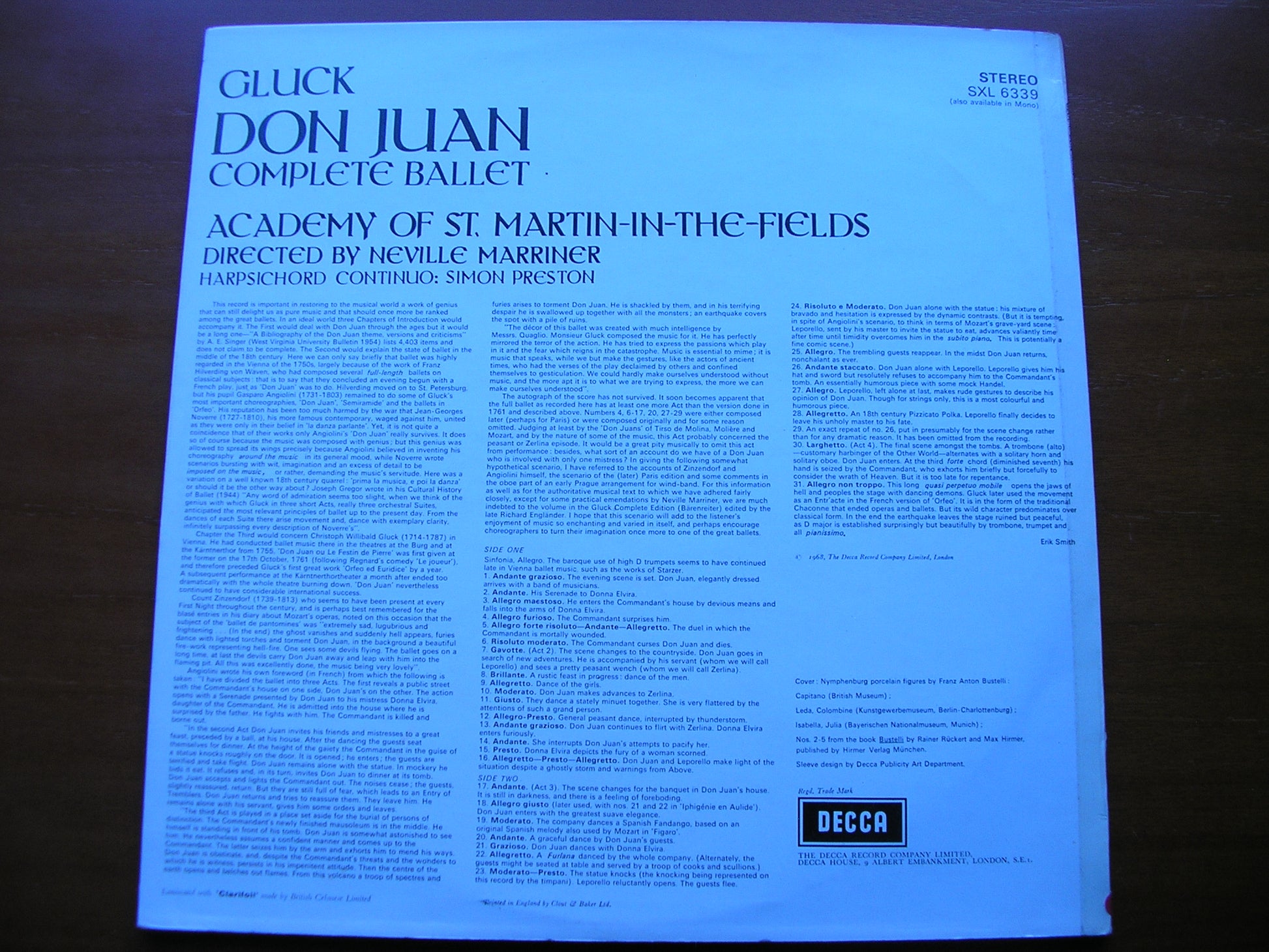 SXL 6339  GLUCK: DON JUAN       NEVILLE MARRINER / ACADEMY OF ST MARTIN IN THE FIELDS