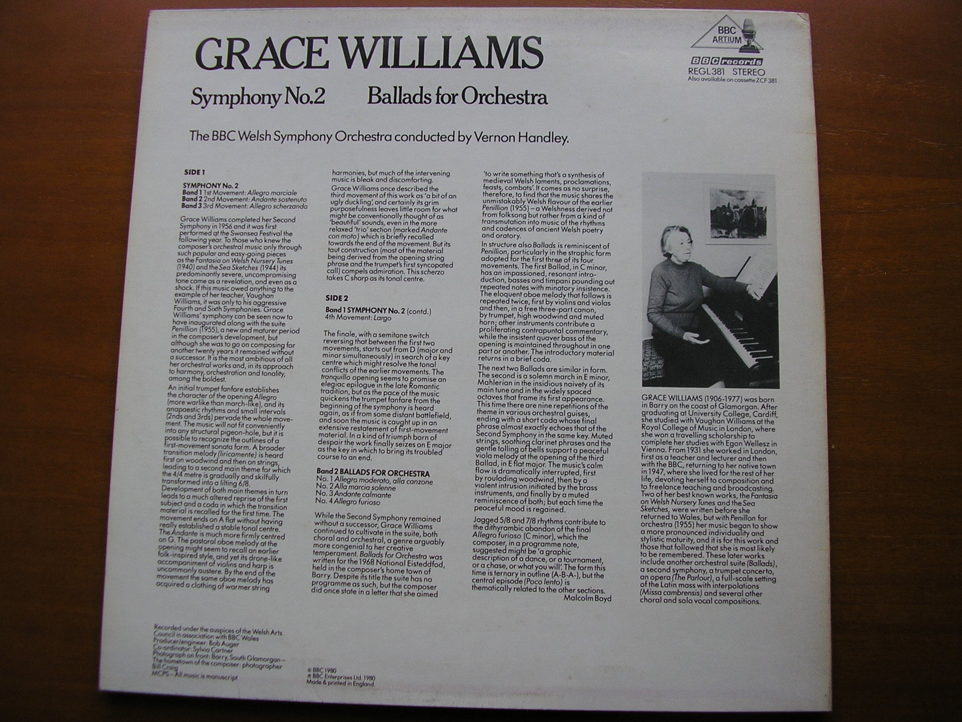 REGL 381  GRACE WILLIAMS: SYMPHONY No. 2 / BALLADS FOR ORCHESTRA     VERNON HANDLEY / BBC WELSH SYMPHOMNY ORCHESTRA