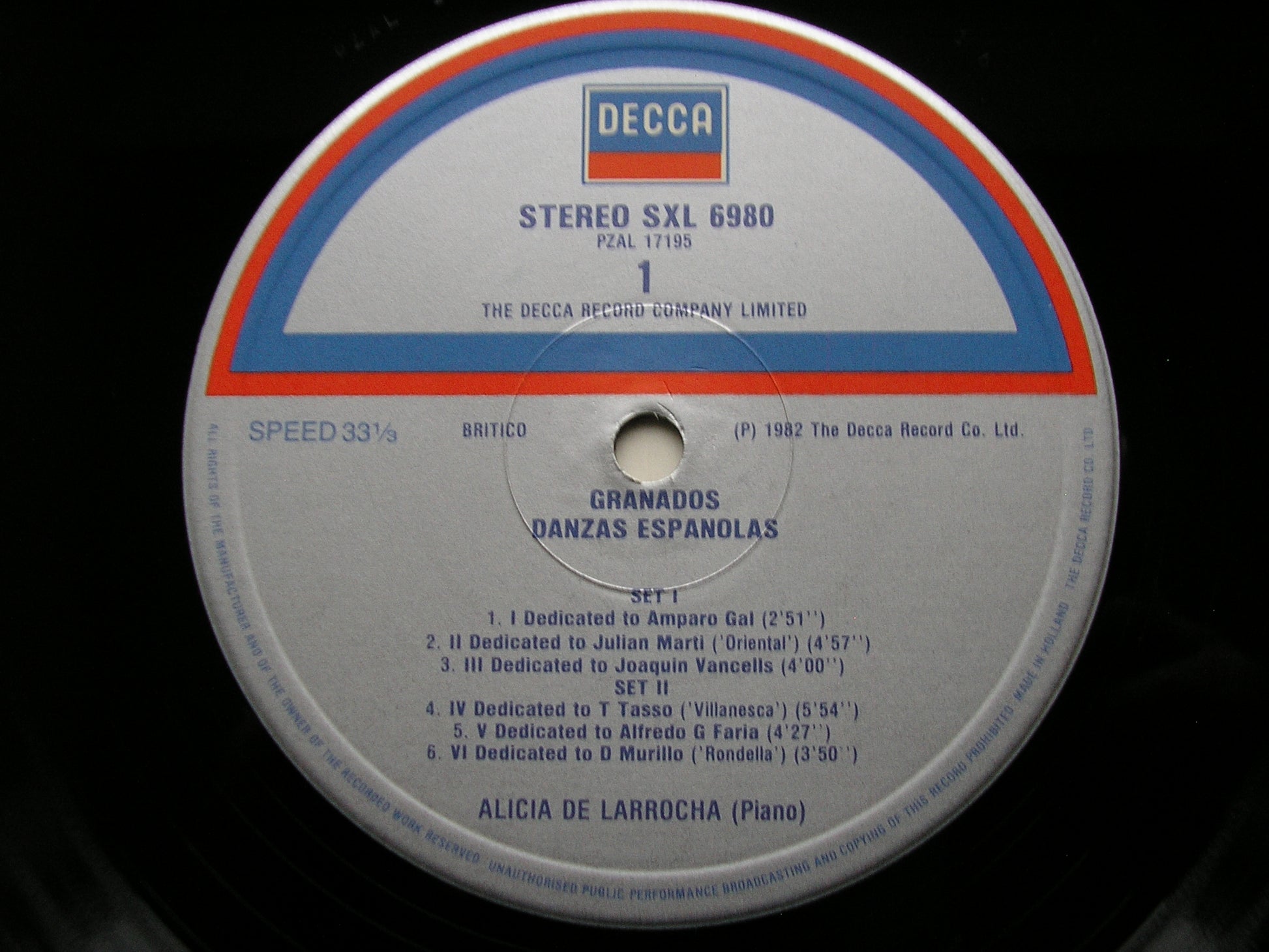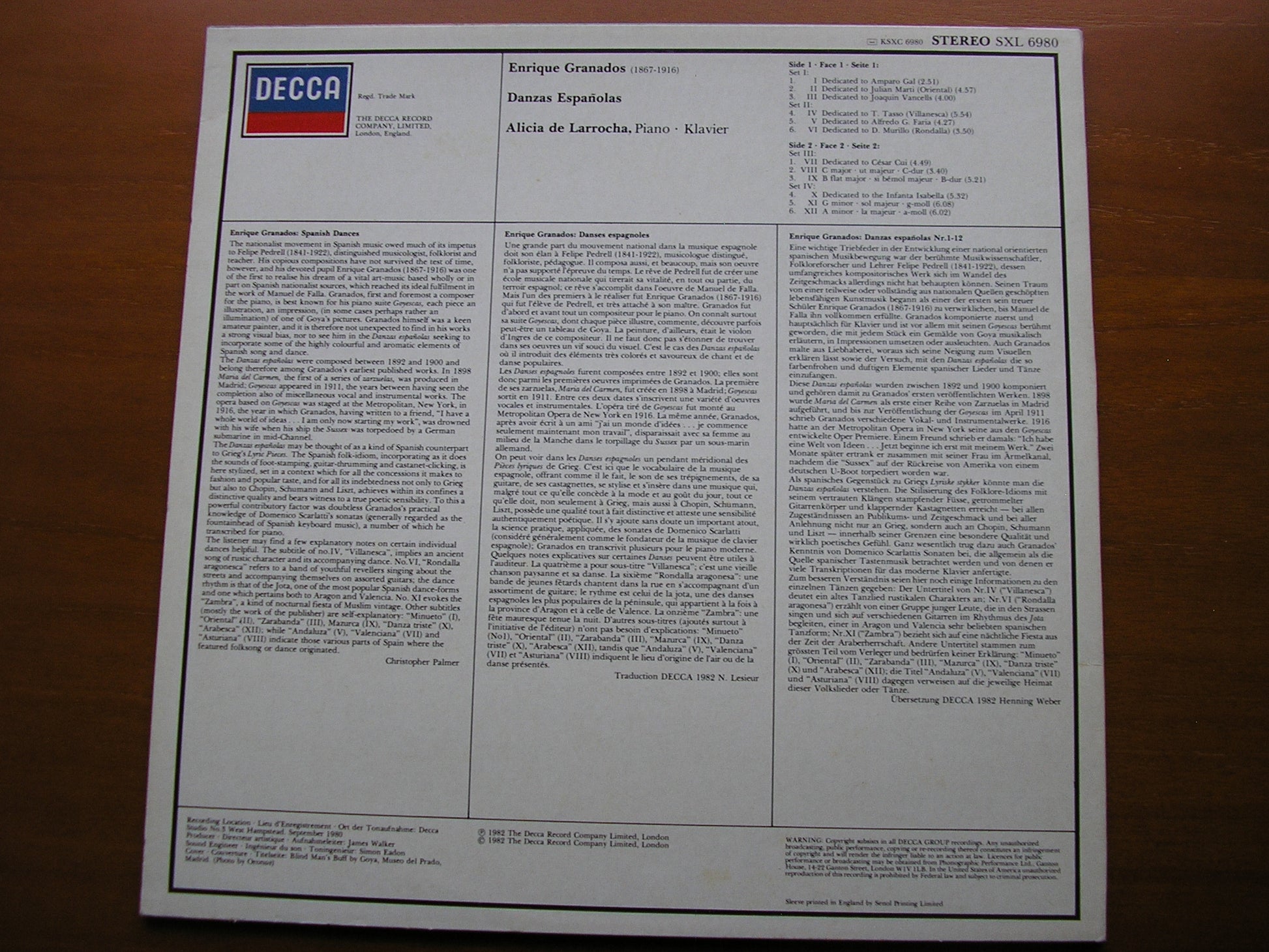 SXL 6980  GRANADOS: DANZAS ESPANOLAS      ALICIA DE LARROCHA