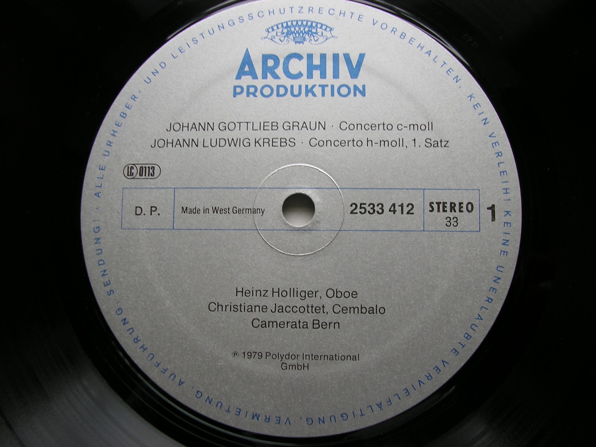 2533 412  GRAUN: OBOE CONCERTOS in C & G / KREBS: OBOE CONCERTO     HEINZ HOLLIGER / CHRISTIANE JACCOTTET / CAMERATA BERN