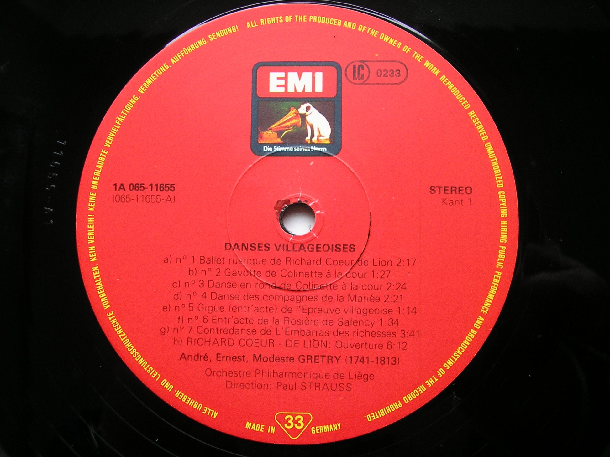 GRETRY: BALLET SUITES from DANSES VILLAGEOISES / CEPHALE & PROCRIS / THREE OVERTURES PAUL STRAUSS / LIEGE PHILHARMONIC 065 11655