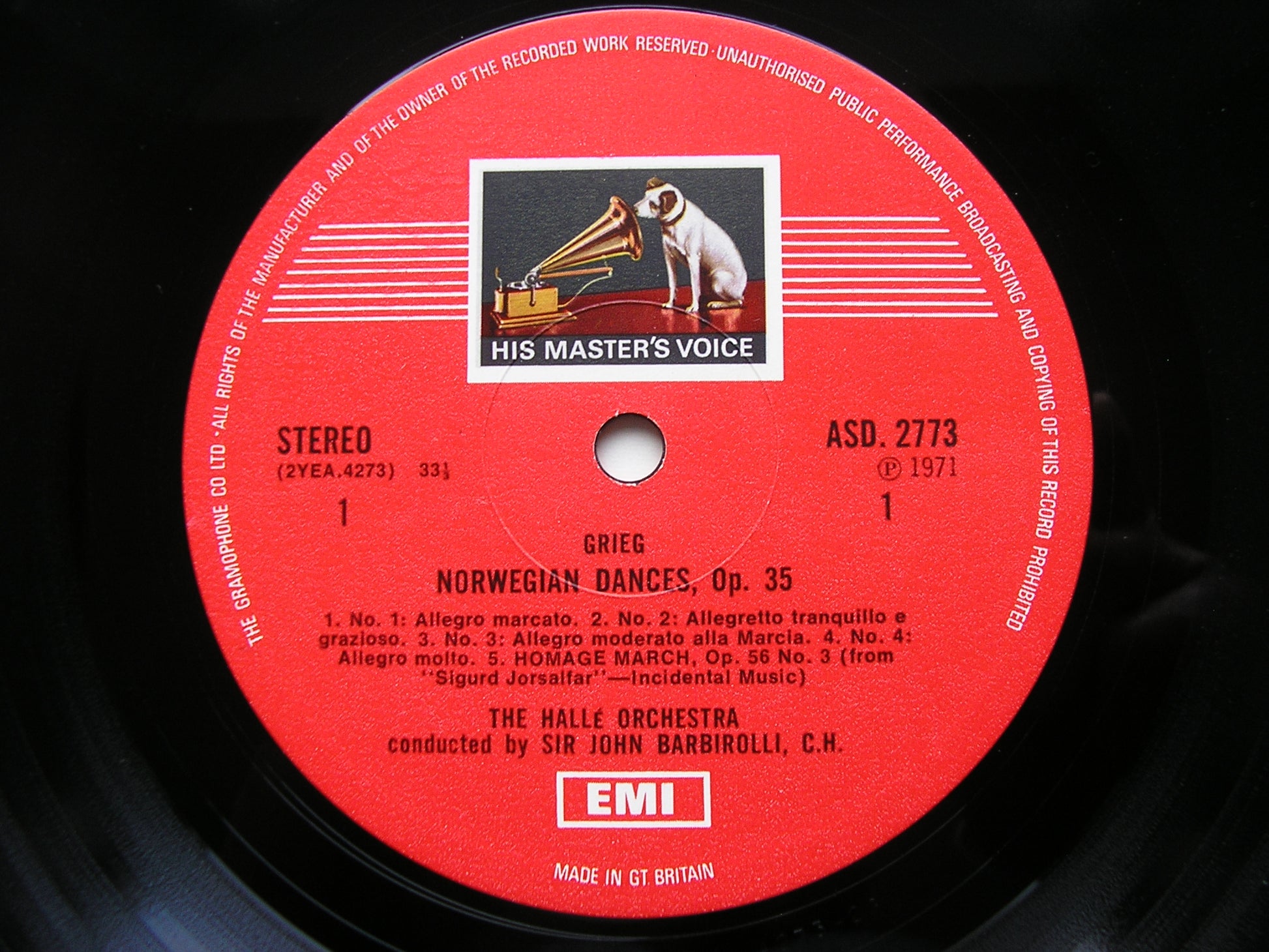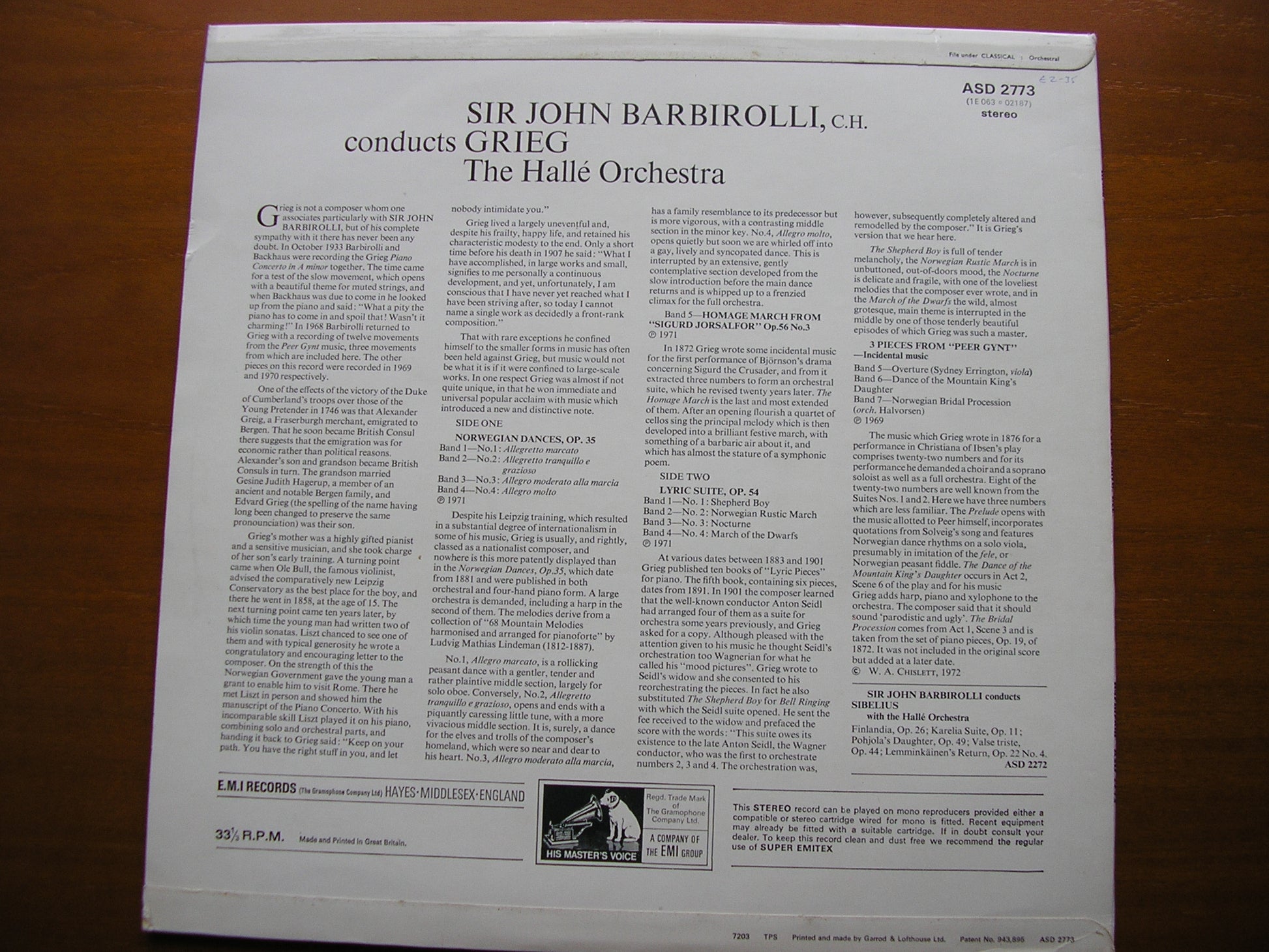 ASD 2773  GRIEG: NORWEGIAN DANCES / LYRIC SUITE / HOMAGE MARCH / 3 PIECES from PEER GYNT        SIR JOHN BARBIROLLI / HALLE ORCHESTRA