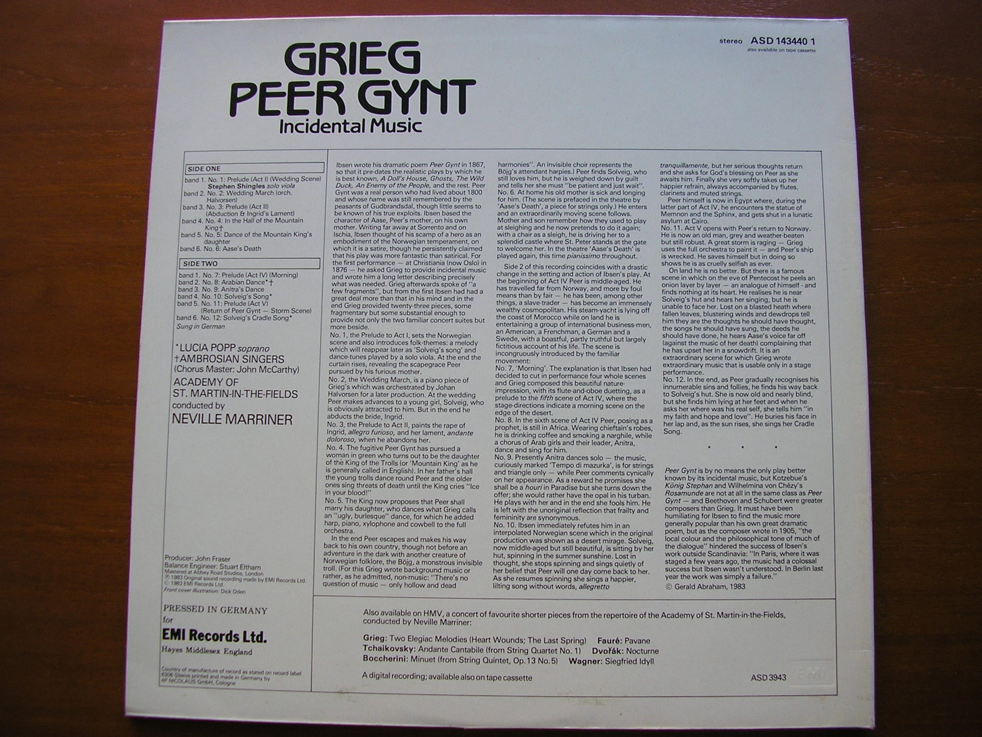 ASD 143440  GRIEG: PEER GYNT    LUCIA POPP / ACADEMY OF ST MARTIN IN THE FIELDS / NEVILLE MARRINER