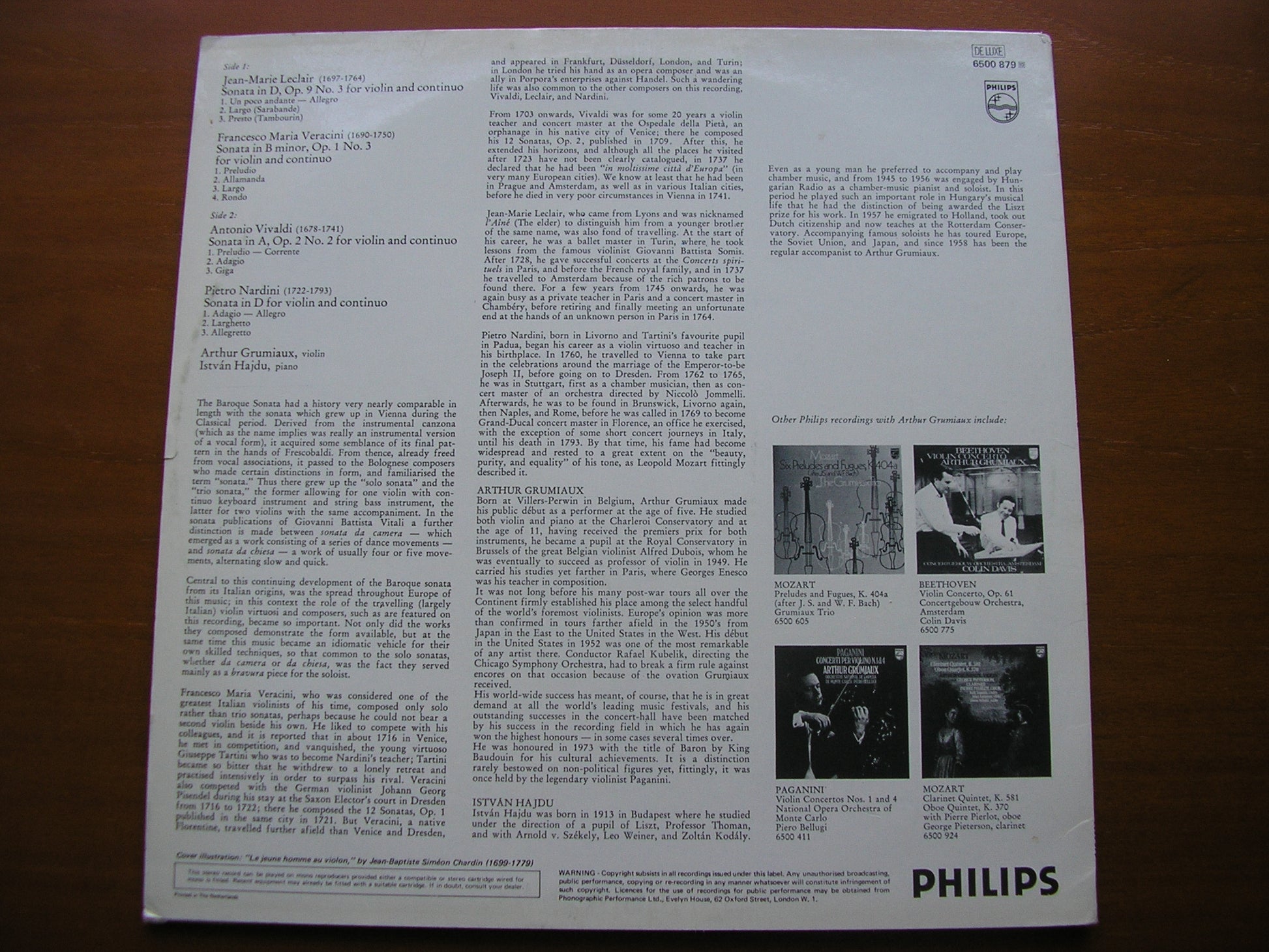 GRUMIAUX PLAYS LECLAIR / VERACINI / VIVALDI / NARDINI GRUMIAUX / HAJDU 6500 879