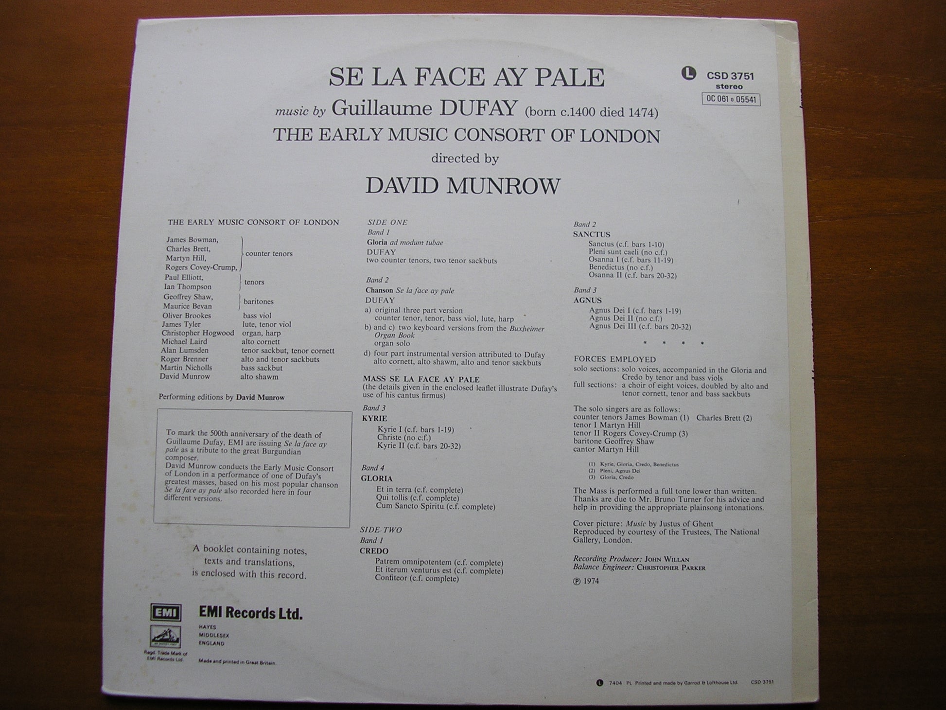CSD 3751  DUFAY: MASS SE LA FACE AY PALE  (If My Face Looks Pale)    THE EARLY MUSIC CONSORT OF LONDON / DAVID MUNROW
