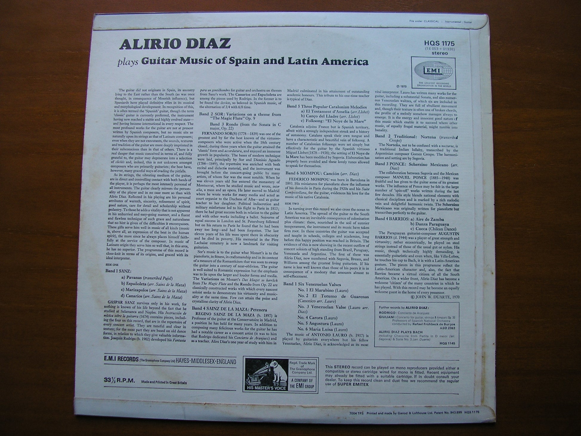 HQS 1175  SOR / SANZ / DE LA MAZA / LAURO / MOMPOU / PONCE / BARRIOS: MUSIC FOR GUITAR       ALIRIO DIAZ