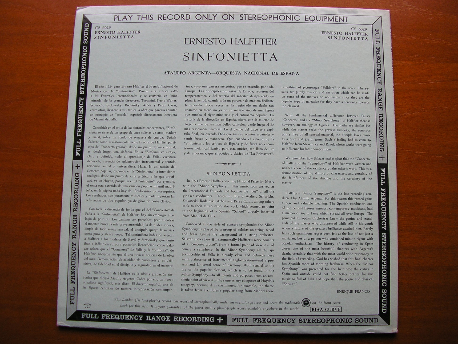 CS 6029  HALFFTER: SINFONIETTA      ATAULFO ARGENTA / SPANISH NATIONAL ORCHESTRA