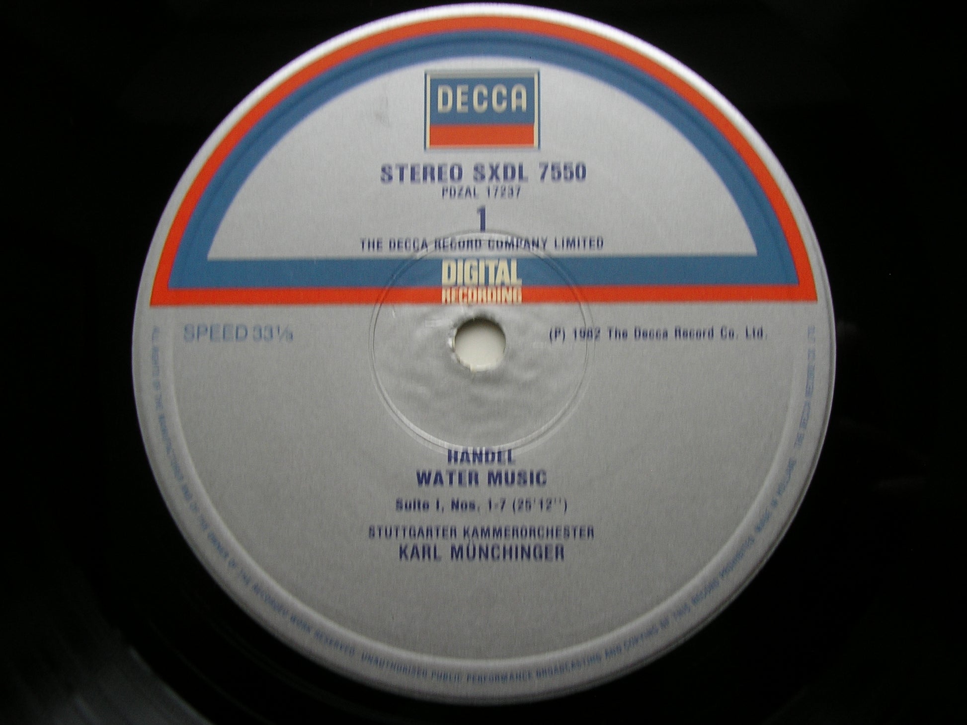 SXDL 7550  HANDEL: WATER MUSIC     KARL MUNCHINGER / STUTTGART CHAMBER ORCHESTRA