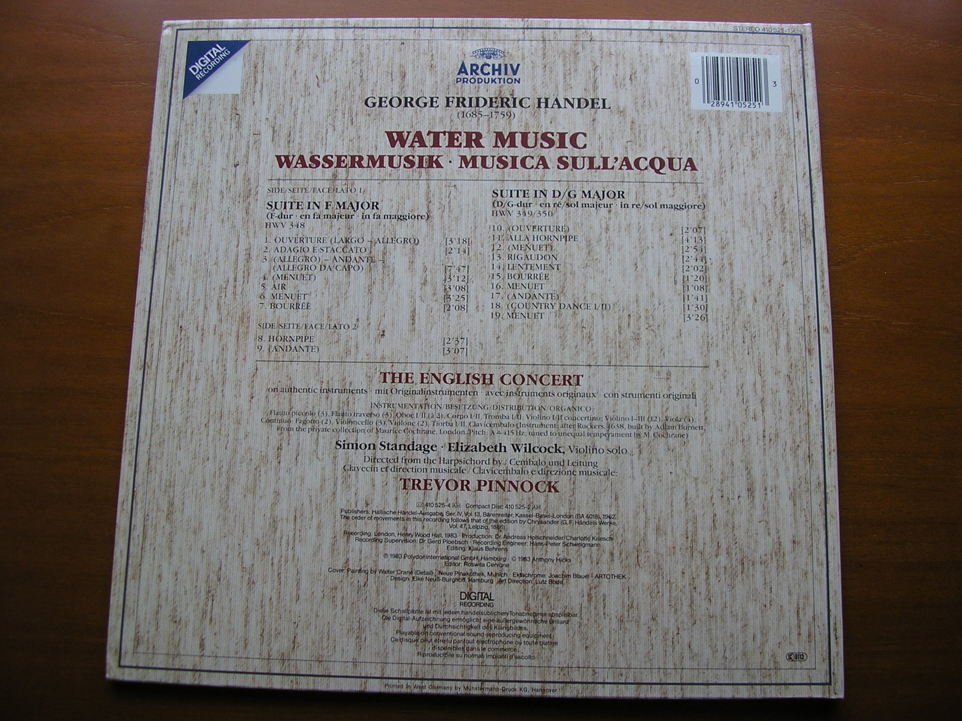 410 525  HANDEL: WATER MUSIC    TREVOR PINNOCK / THE ENGLISH CONSORT