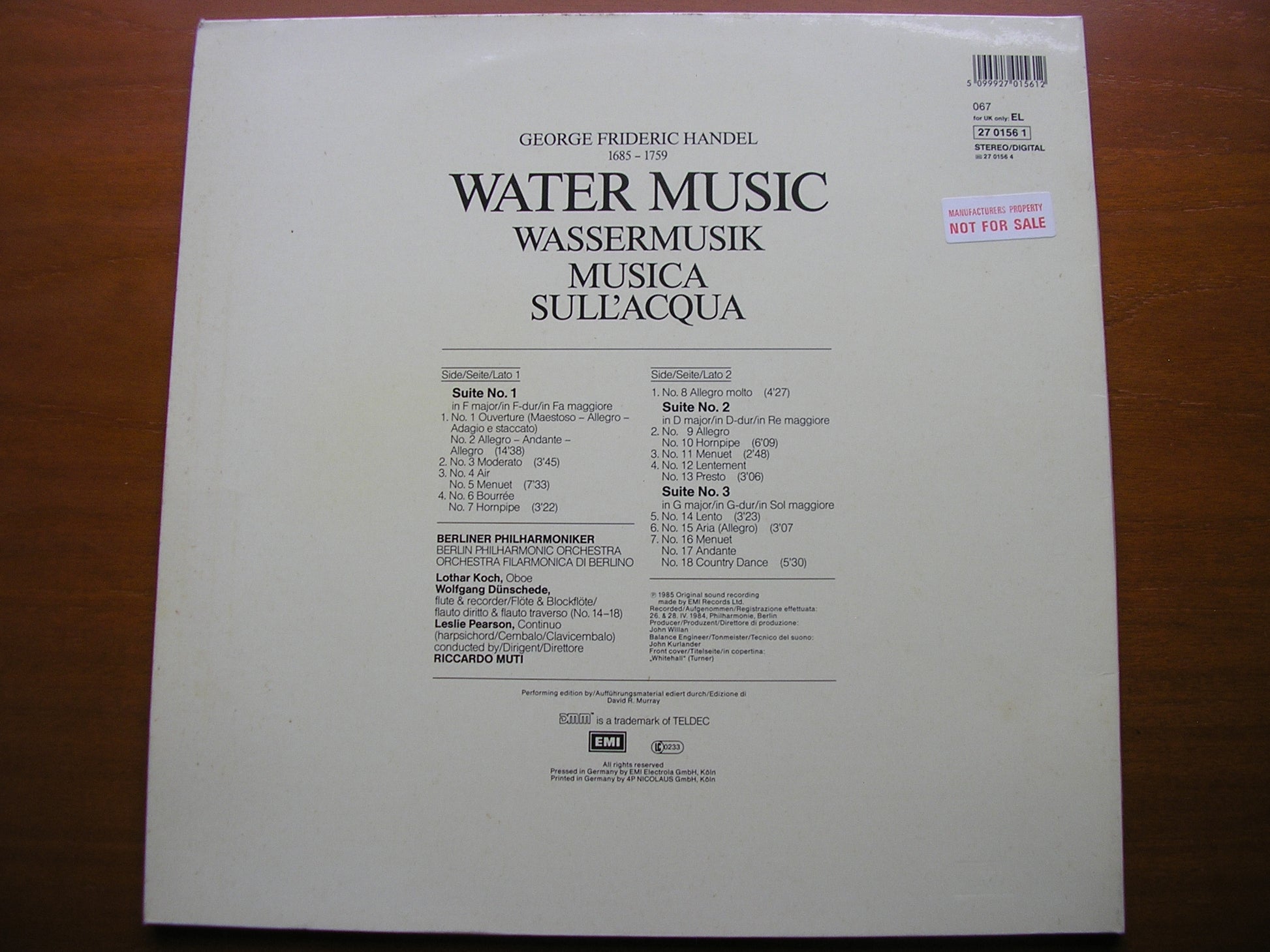27 0156  HANDEL: WATER MUSIC     RICCARDO MUTI / BERLIN PHILHARMONIC ORCHESTRA