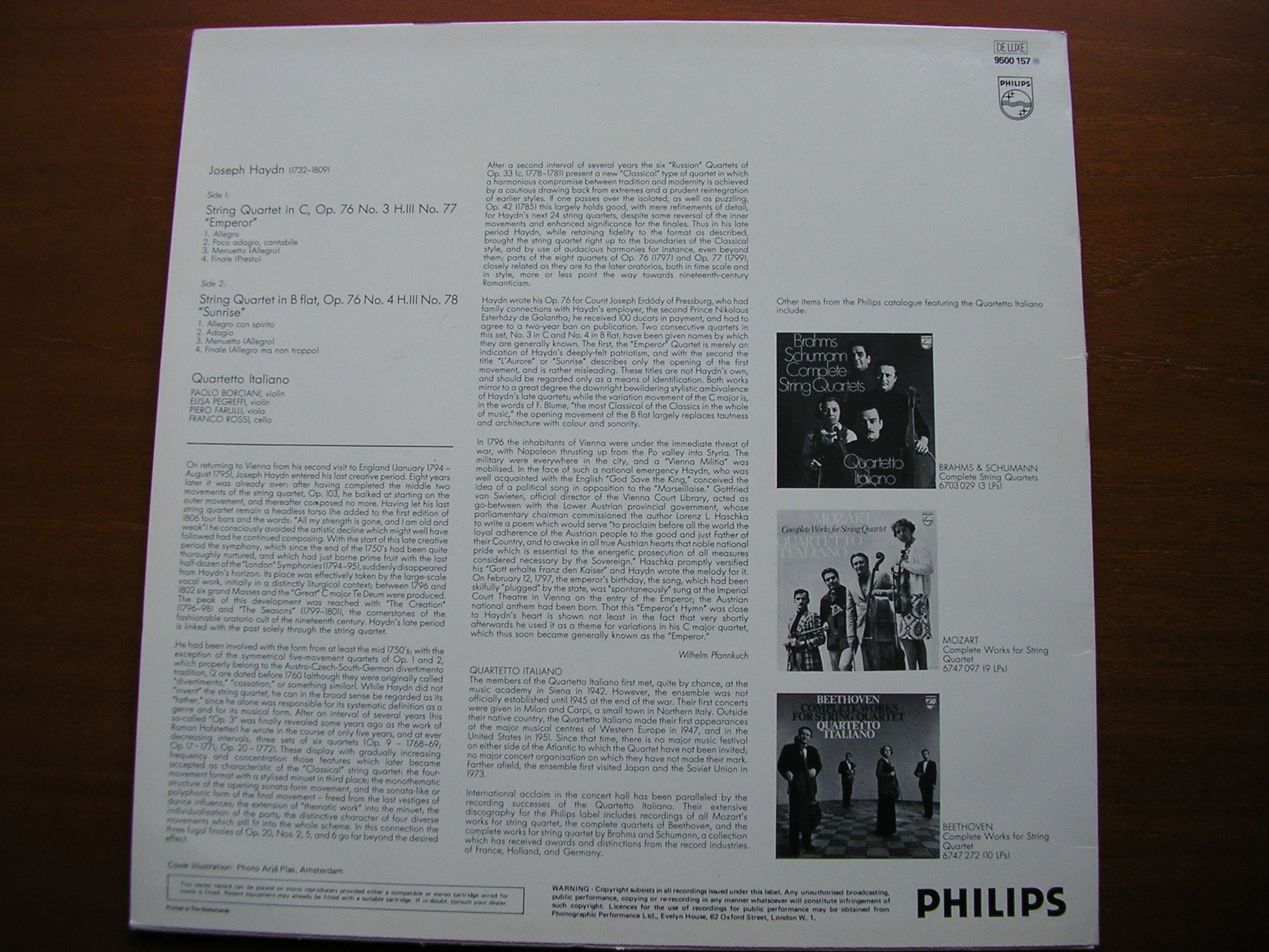 HAYDN: 'EMPEROR' & 'SUNRISE' STRING QUARTETS Op. 76 QUARTETTO ITALIANO 9500 157