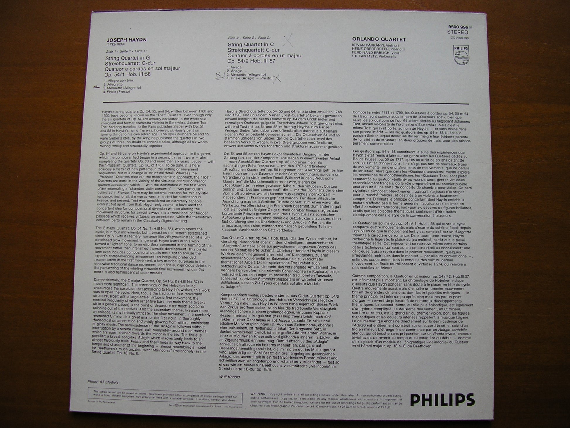 9500 996 HAYDN: STRING QUARTETS Op. 54  nos. 1 & 2        ORLANDO QUARTET