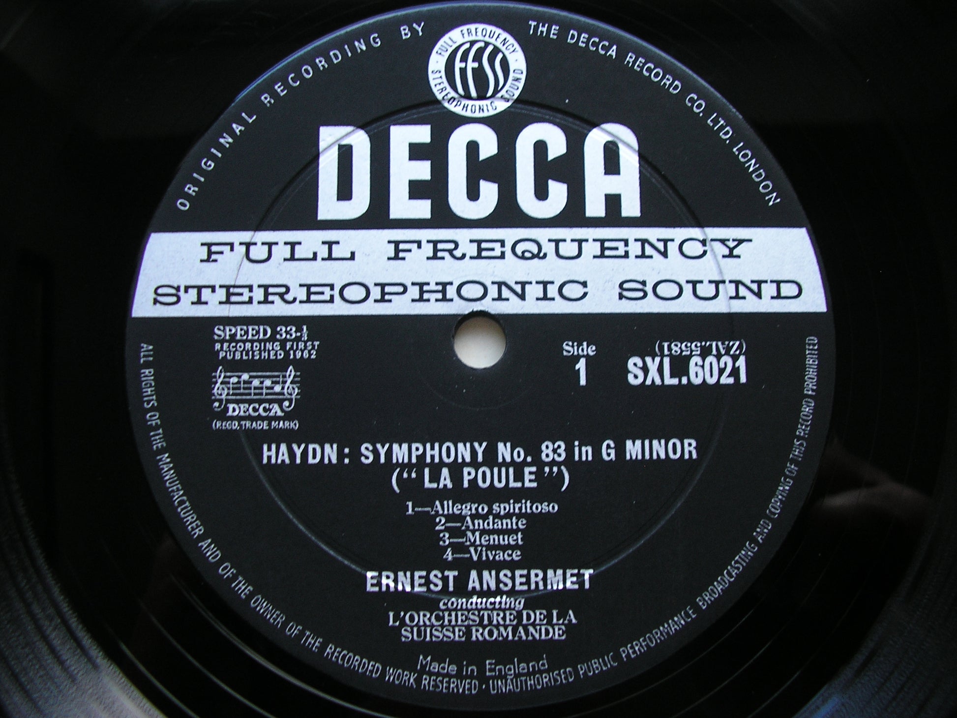 SXL 6021  HAYDN: SYMPHONIES Nos. 83 & 87     ERNEST ANSERMET / SUISSE ROMANDE ORCHESTRA