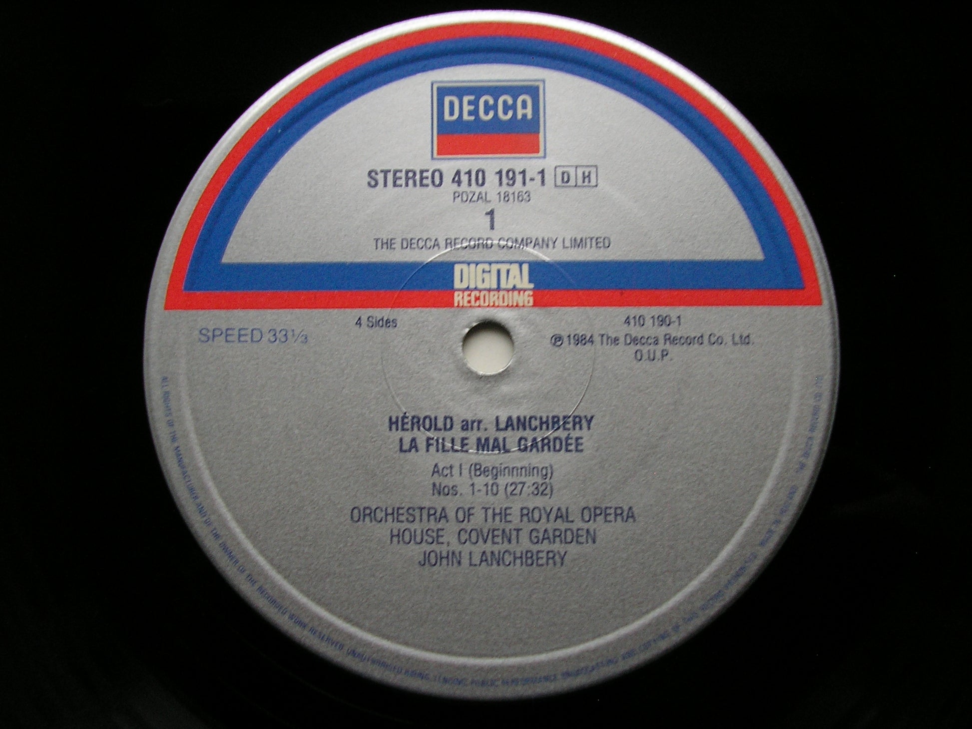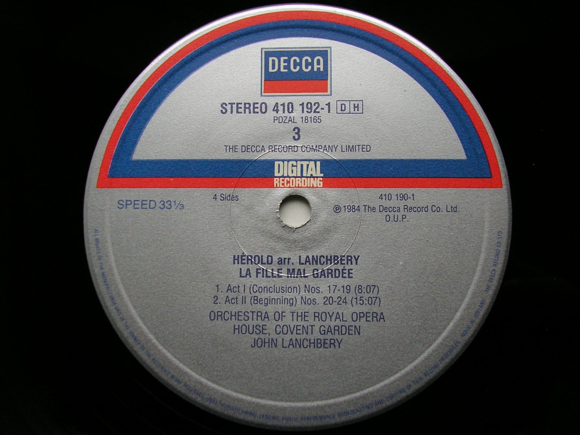 410 190  HEROLD: LA FILLE MAL GARDEE     JOHN LANCHBERY / ORCHESTRA OF THE ROYAL OPERA HOUSE COVENT GARDEN