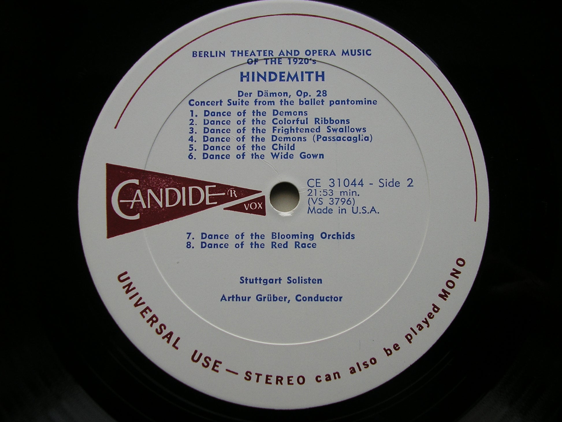 CE 31044  HINDEMITH: MUSIC FOR THE THEATRE   'There and Back' / Nunschi-Nunschi / Concert suite from the ballet pantomime The Demon   SOLOISTS / BERLIN SYMPHONY ORCHESTRA / ARTHUR GRUBER