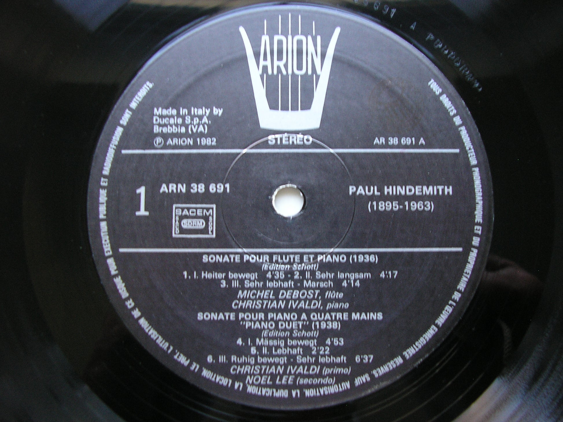 ARN 36891  HINDEMITH: SONATA FOR FLUTE & PIANO / SONATA FOR CELLO & PIANO / PIANO SONATA FOR FOUR HANDS     CHRISTIAN IVALDI / NOEL LEE / ALAIN MEUNIER / MICHEL DEBOST
