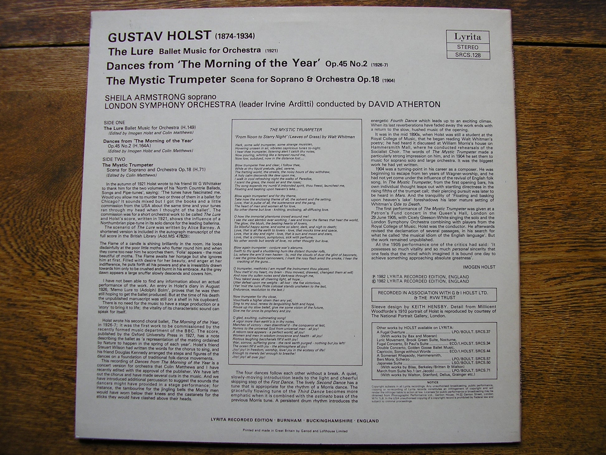 SRCS 128  HOLST: THE LURE / THE MYSTIC TRUMPETER / DANCES from 'THE MORNING OF THE YEAR'   SHEILA ARMSTRONG / LONDON SYMPHONY ORCHESTRA / DAVID ATHERTON