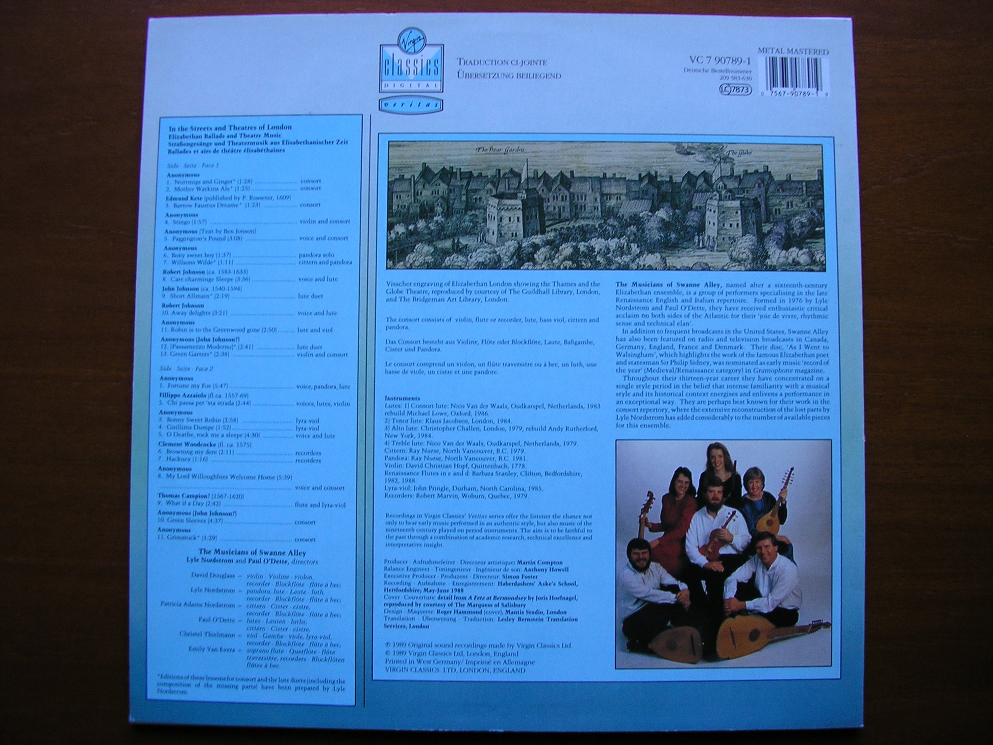 VC 7 90789  ELIZABETHAN SONGS & THEATRE MUSIC    THE MUSICIANS OF SWANNE ALLEY / LYLE NORDSTROM & PAUL O'DETTE