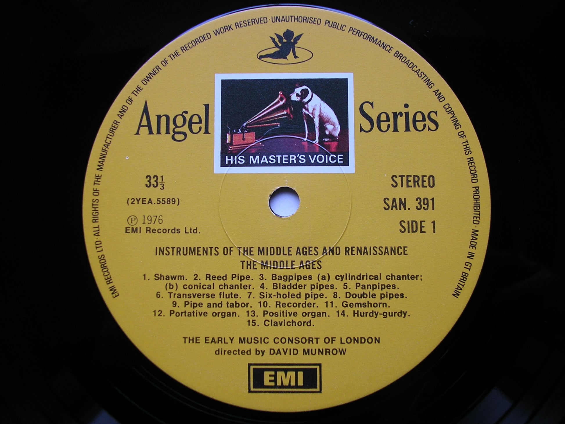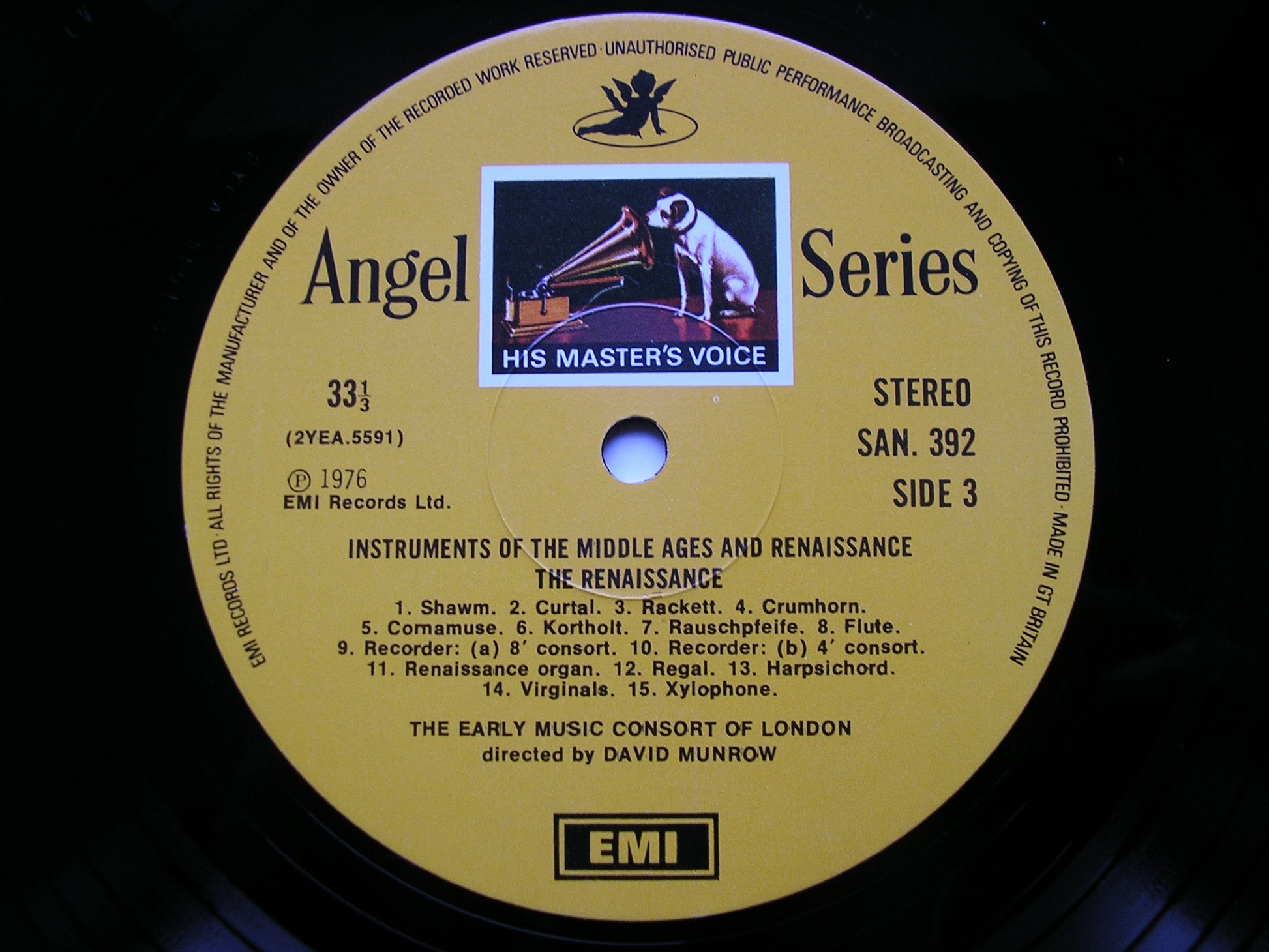INSTRUMENTS OF THE MIDDLE AGES & RENAISSANCE MUNROW / THE EARLY MUSIC CONSORT OF LONDON SLS 988
