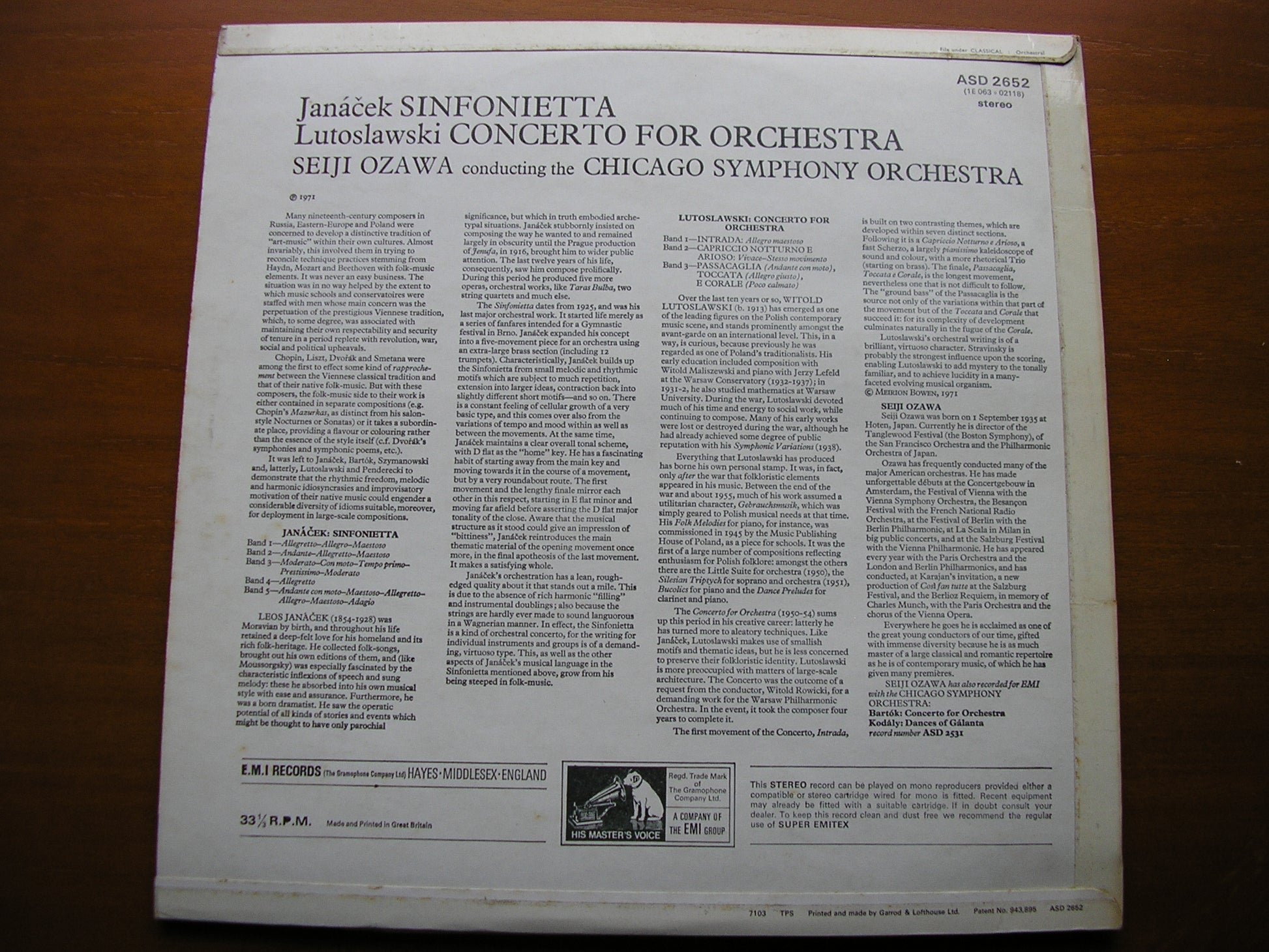 ASD 2652  JANACEK: SINFONIETTA / LUTOSLAWSKI: CONCERTO FOR ORCHESTRA    SEIJI OZAWA / CHICAGO SYMPHONY ORCHESTRA