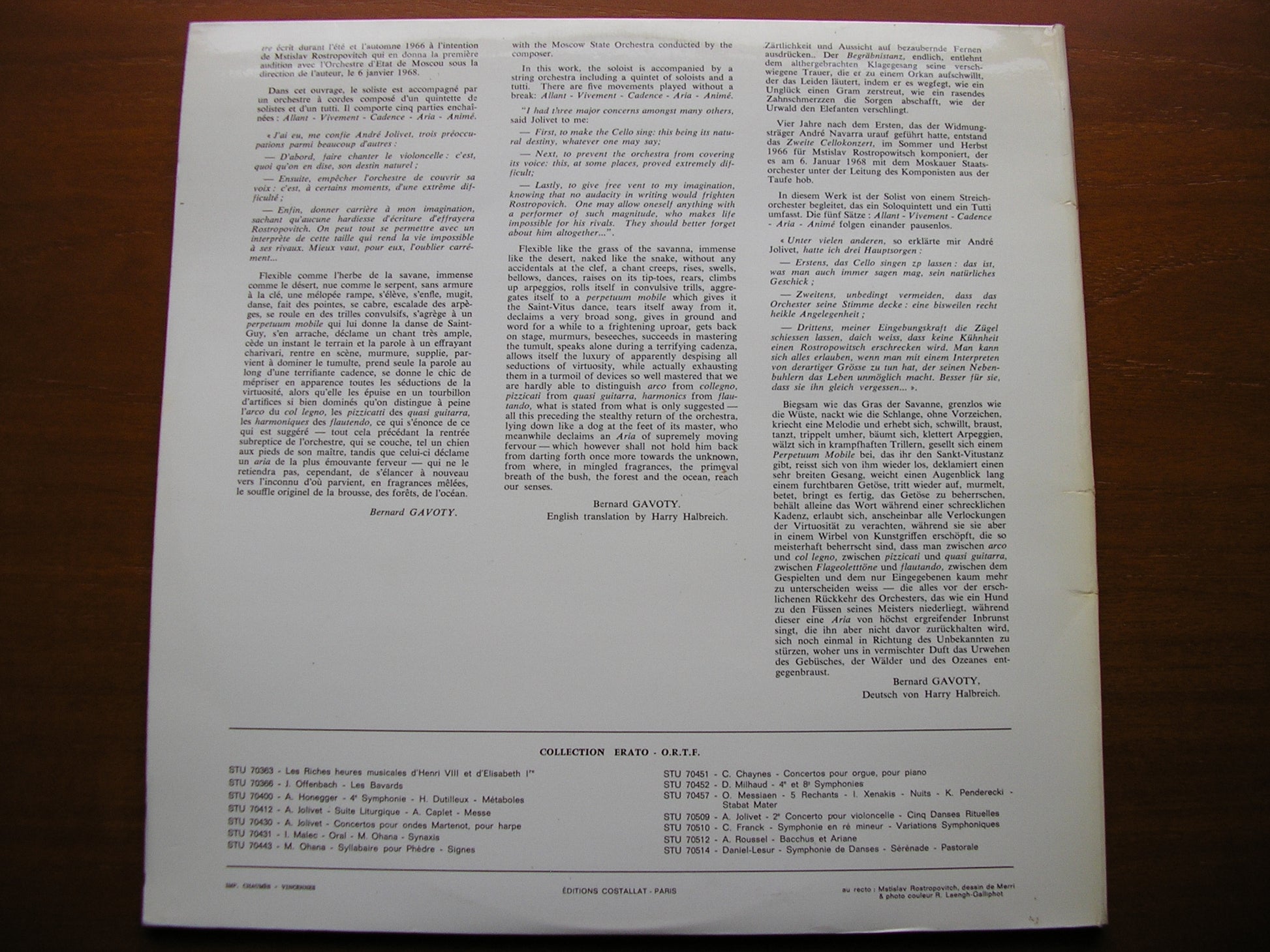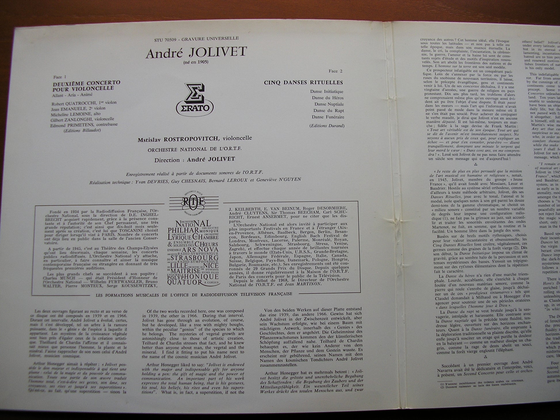 STU 70509  JOLIVET: CELLO CONCERTO No. 2 / 5 RITUAL DANCES    MSTISLAV ROSTROPOVITCH / FRENCH NATIONAL RADIO ORCHESTRA / ANDRE JOLIVET