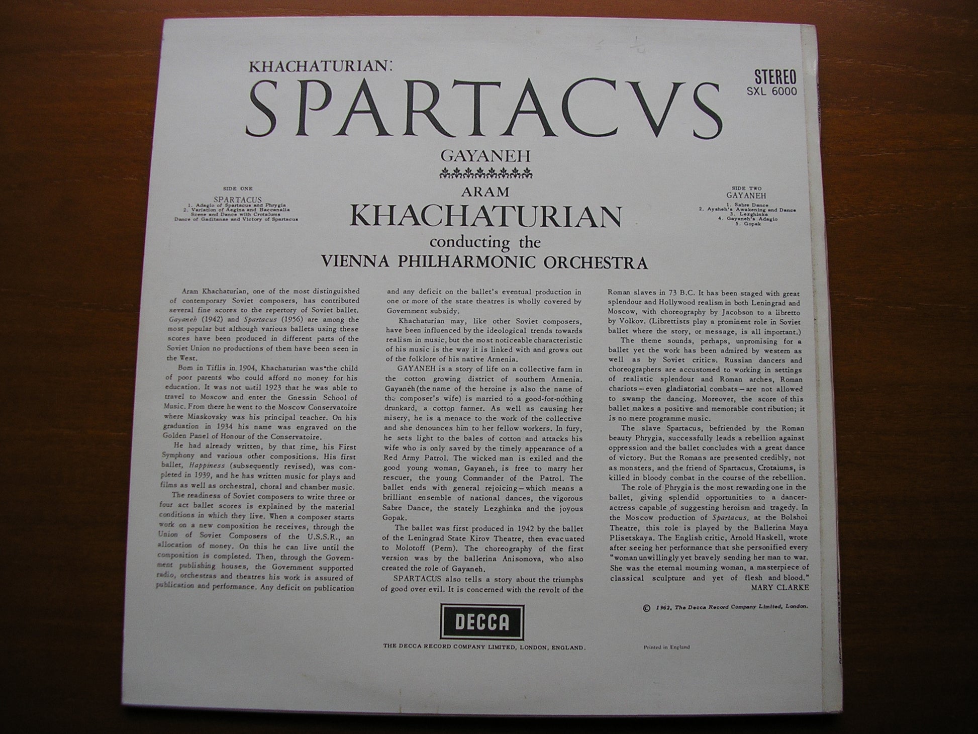 SXL 6000  KHACHATURIAN: SPARTACUS / GAYANEH   ARAM KHACHATURIAN / VIENNA PHILHARMONIC ORCHESTRA